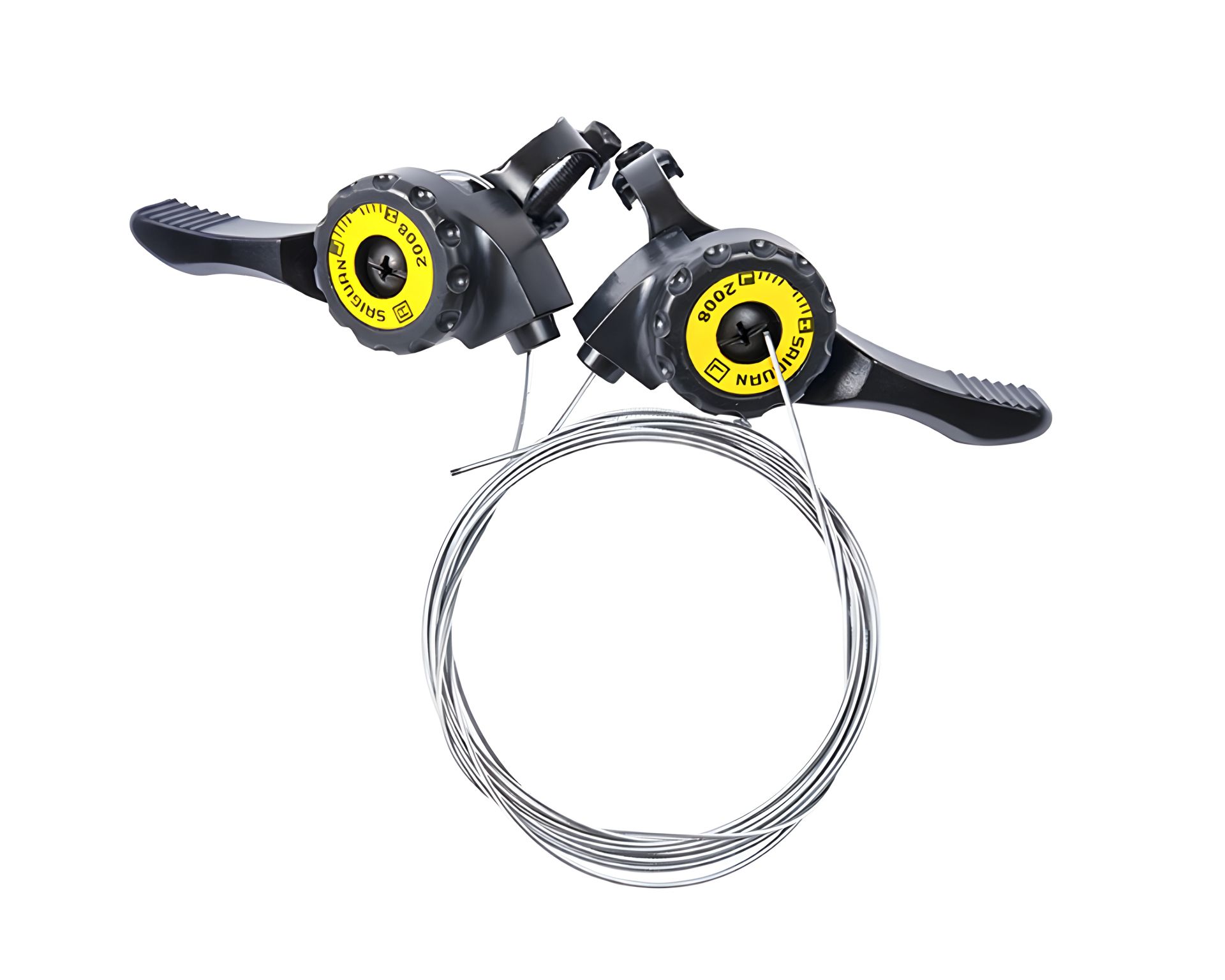 Манетки Saiguan можно установить как на руль, так и на раму. Подходят для 2х3 скоростей спереди и 4х7 сзади. Укомплектованы 2-мя тросиками. Работают индексно, а также фрикционно. Подойдут к велосипедам МТБ и шоссе.