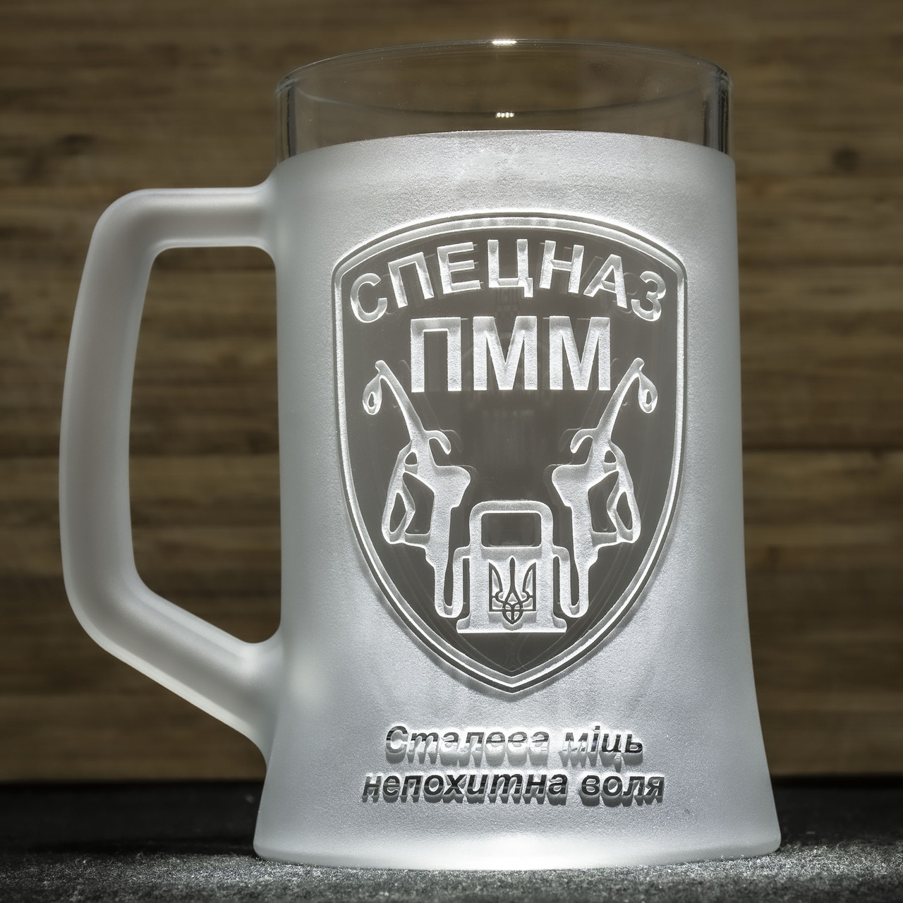 Матовый бокал для пива с гравировкой шеврона Спецназ ПММ
