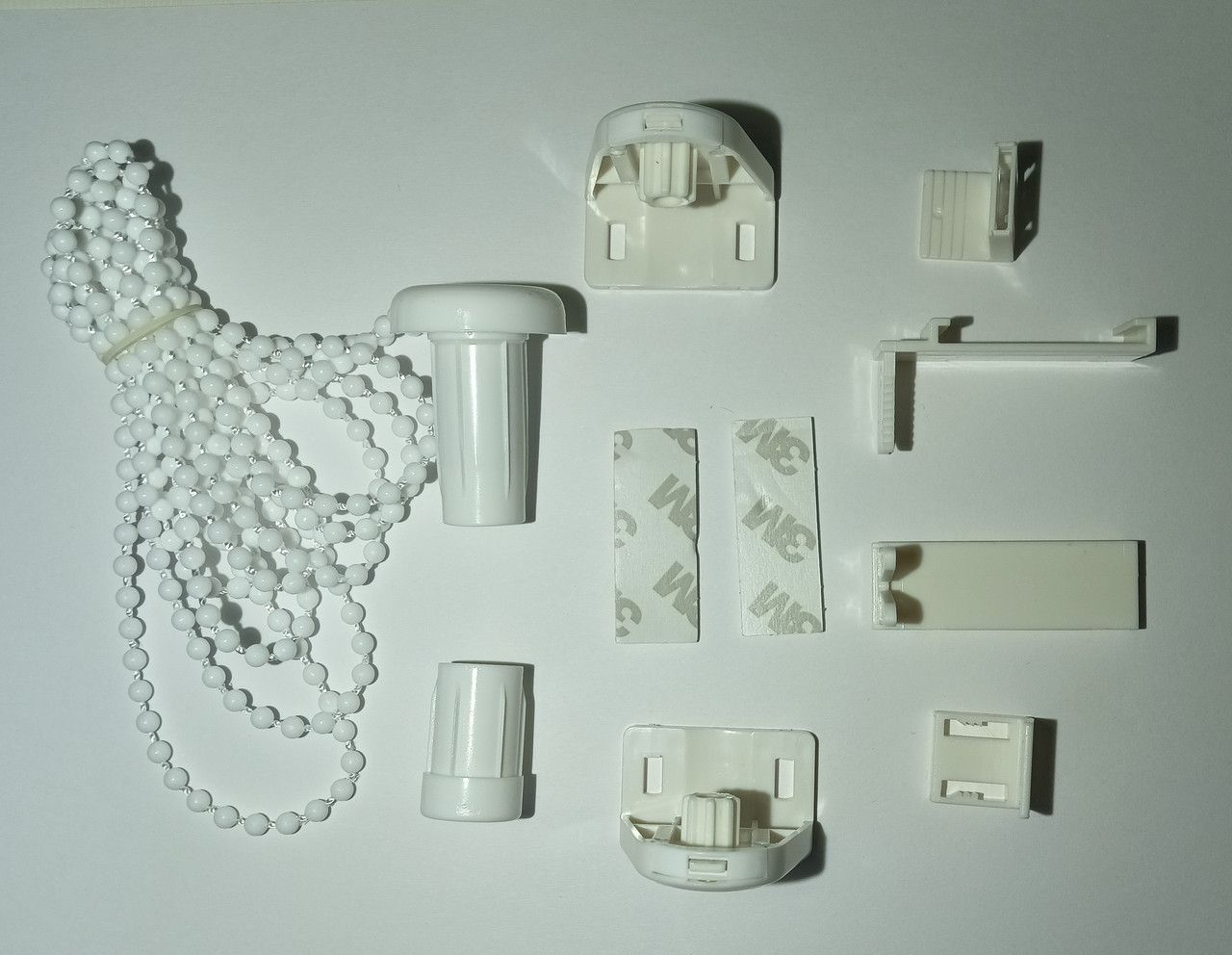 При поломке держателей рулонных штор (если нельзя найти точно такие же какие были у вас) нужно заменить весь комплект. При этом обращайте внимание на диаметр вала вашей рулонной шторы, чтобы правильно подобрать держатели. Замена очень простая: