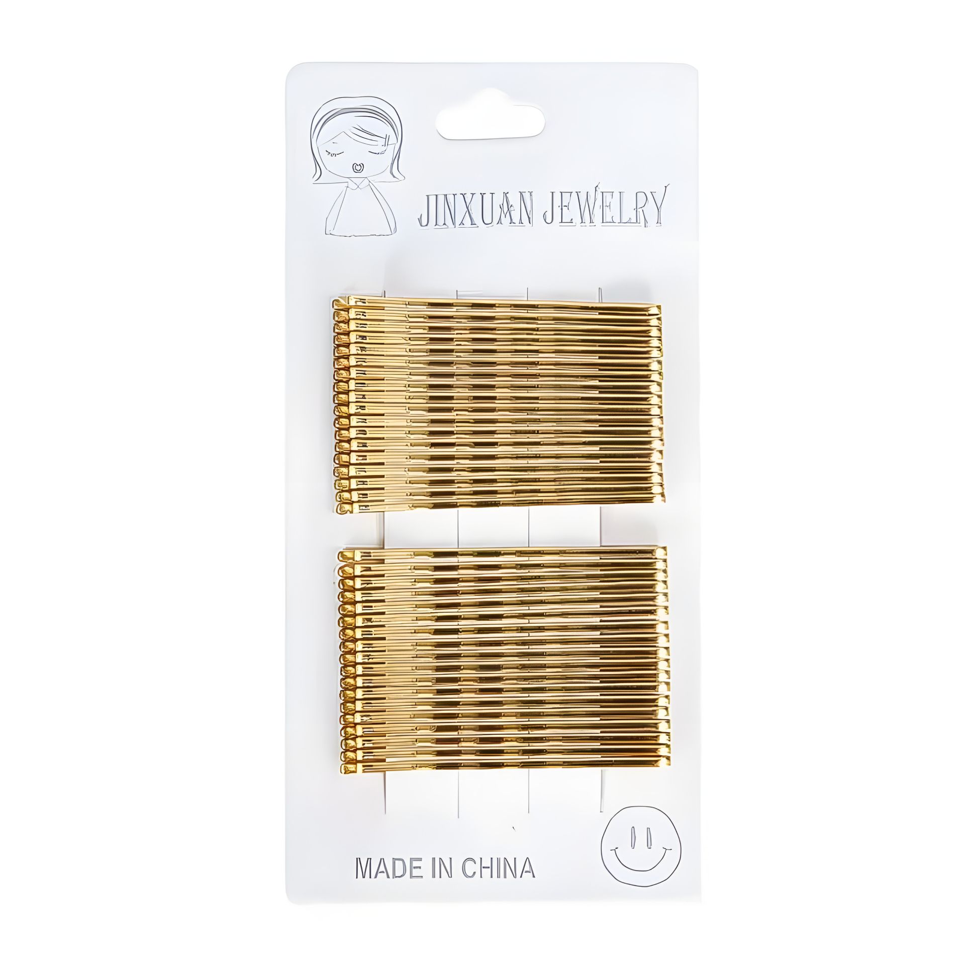 Металлические заколки-невидимки для волос волна 53 мм золотые упаковка 36 штук
