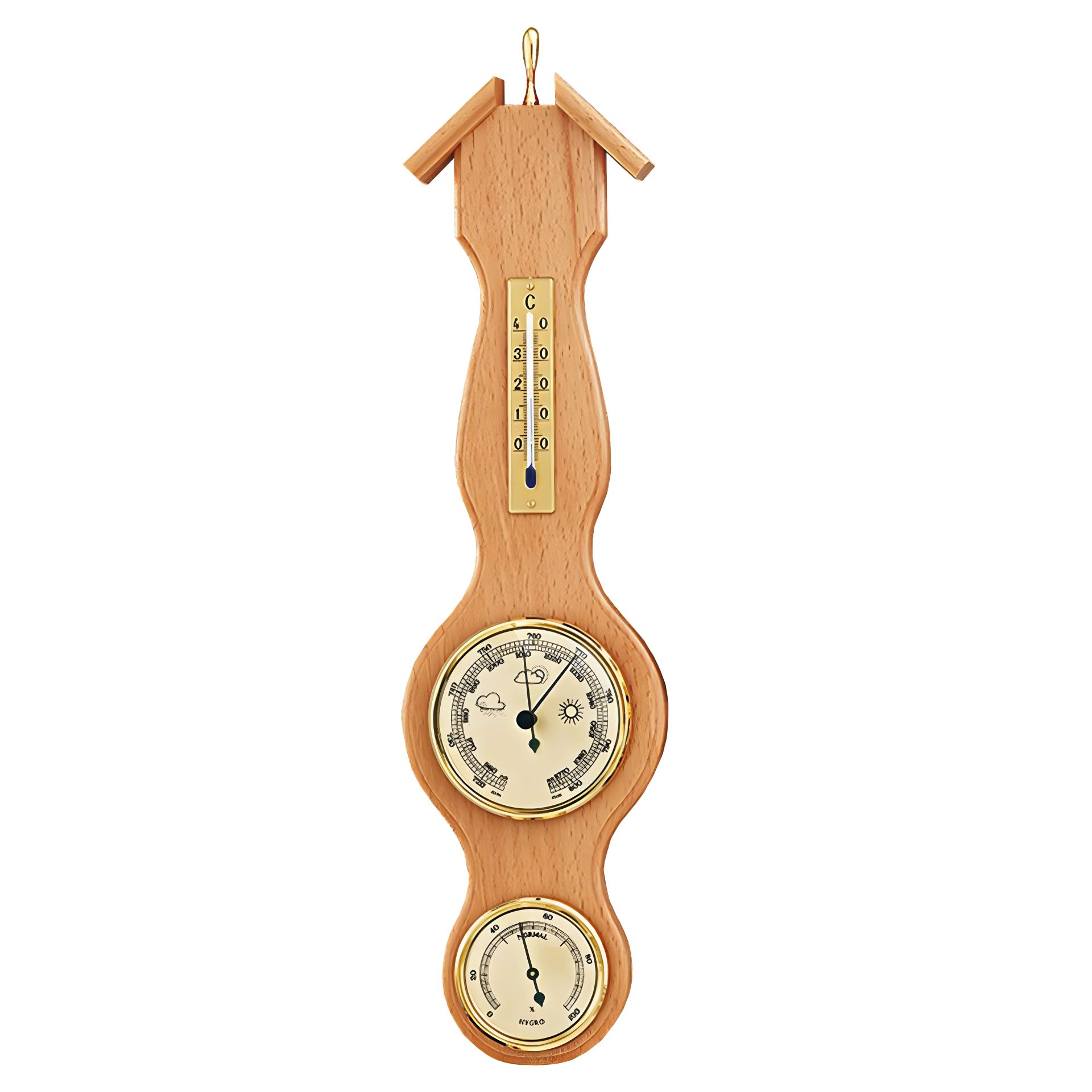 Настенная метеостанция Moller 203057 Beech состоит из барометра с большим открытым циферблатом, гигрометра и термометра, объединенных в деревянном корпусе. Вся продукция Moller производится из твердых пород дерева, а именно из бука, поверхность шлифуется, после чего корпус покрывается специальными составами лака для придания необходимой долговечности и подчеркивания оригинальной текстуры древесины бука. Барометры Moller адаптированы для нашего рынка и имеют шкалу не только в гектопаскалях, но и в миллиметрах ртутного столба. Качество и надежность продукции Moller подкреплены пятилетней гарантией.
