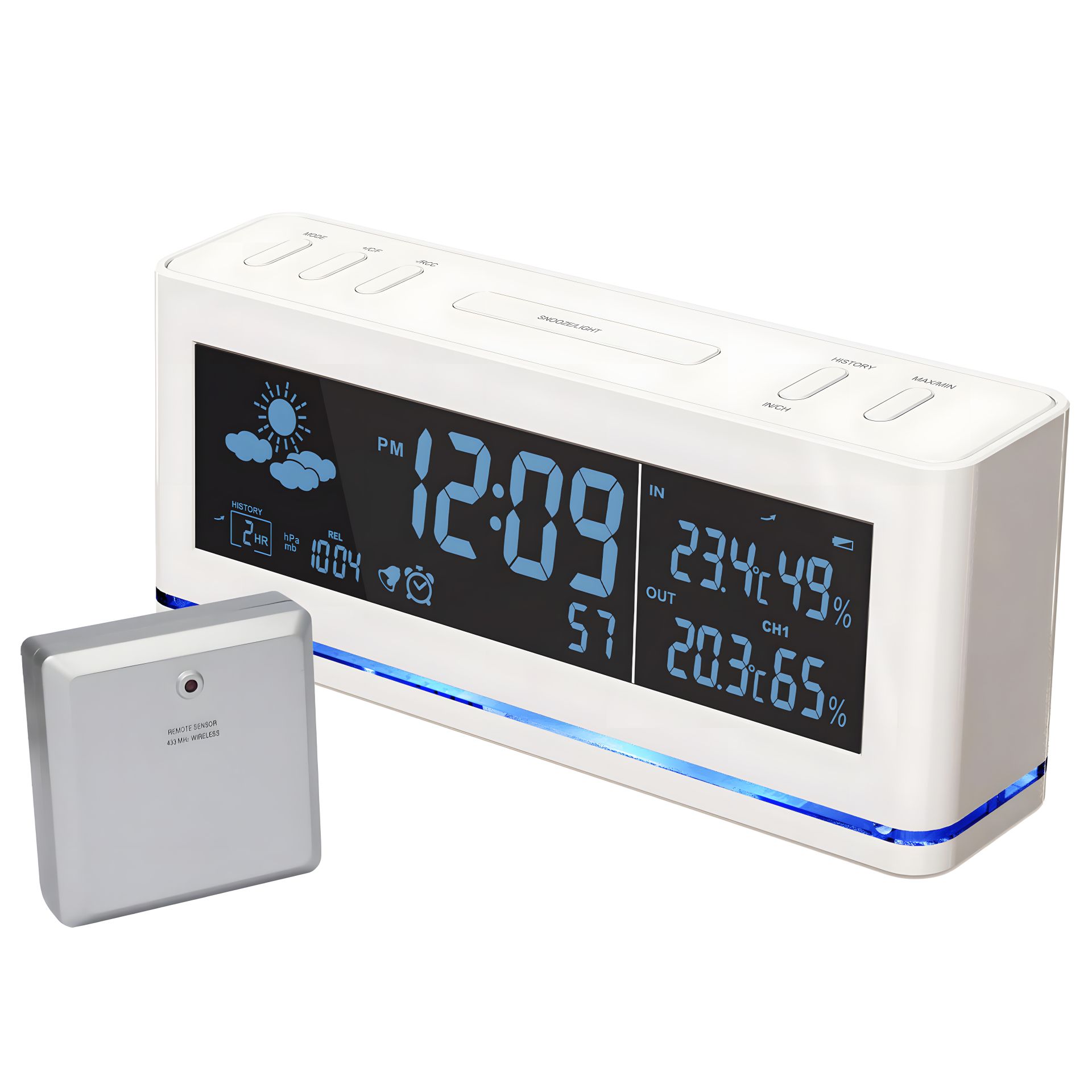 Яркость подсветки корпуса и экрана регулируется в трех вариантах: OFF, LOW, HIGH, что позволяет настроить метеостанцию с учетом личных требований. Кроме того, метеостанция имеет будильник с функцией отложенного сигнала (snooze), что поможет всегда быть вовремя на встрече или не проспать на работу утром. Все эти функции делают метеостанцию Technoline WS6850 White незаменимым помощником в быту.