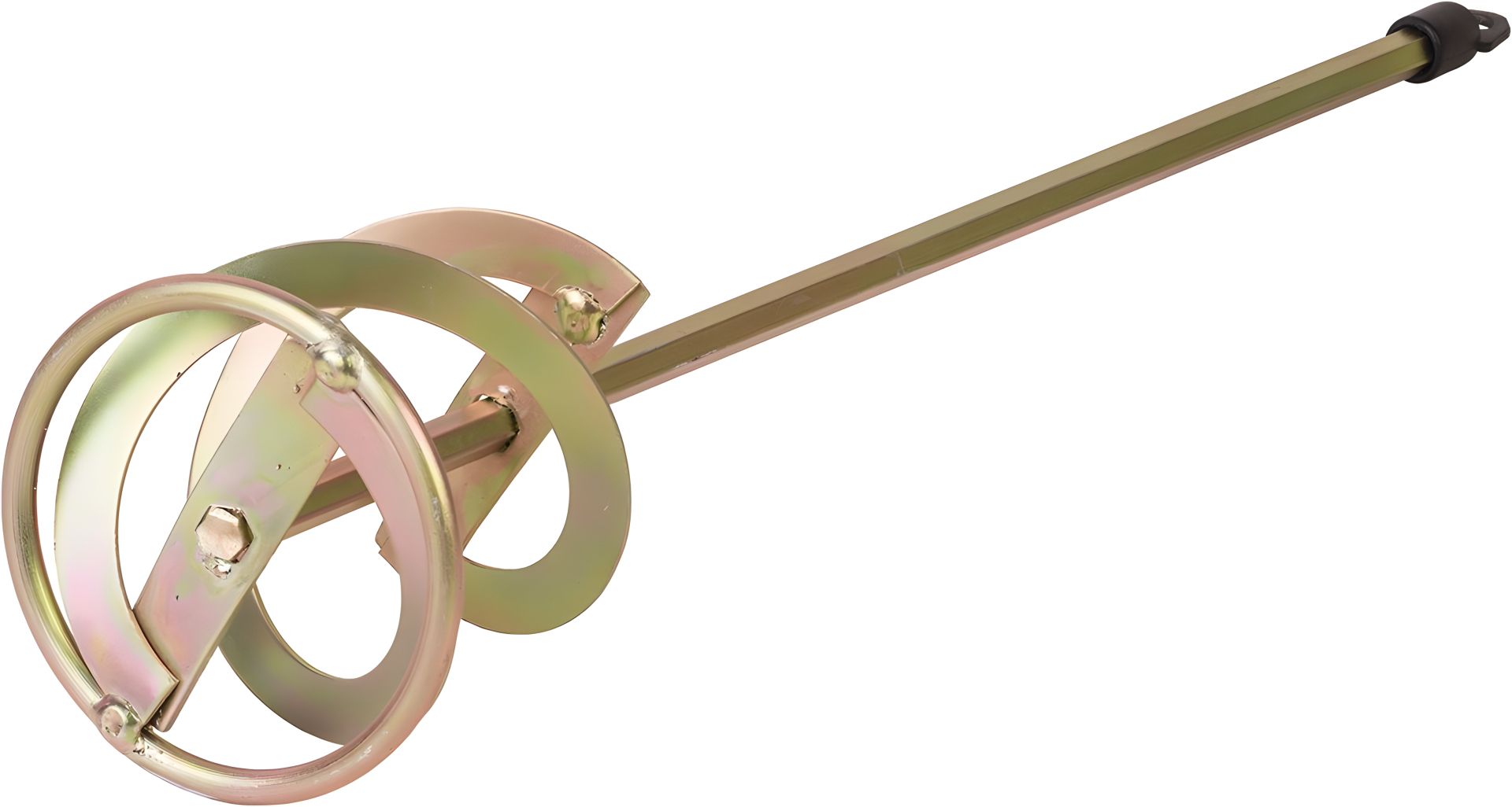Миксер предназначен для размешивания сухих строительных смесей и используется, как насадка для электроинструмента. Стержень миксера имеет шестигранное сечение, что позволяет надежно закрепить его в патроне дрели. Максимальная частота вращения не должна превышать 600 об/мин.