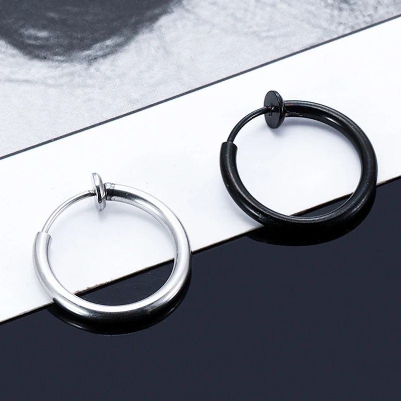 Серьги клипсы кольцо 1шт стальная клипса без прокалывания