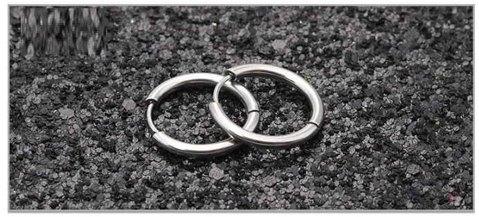 Мужские серьги кольца из стали круглые 2шт серебряный цвет