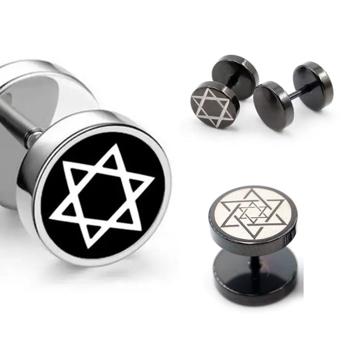 Титановые серьги-штанги шестигранная Звезда Давида, 1шт
