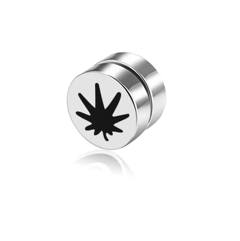 Серьги магнитные клипсы лист конопли плаги-обманки мужские 1шт