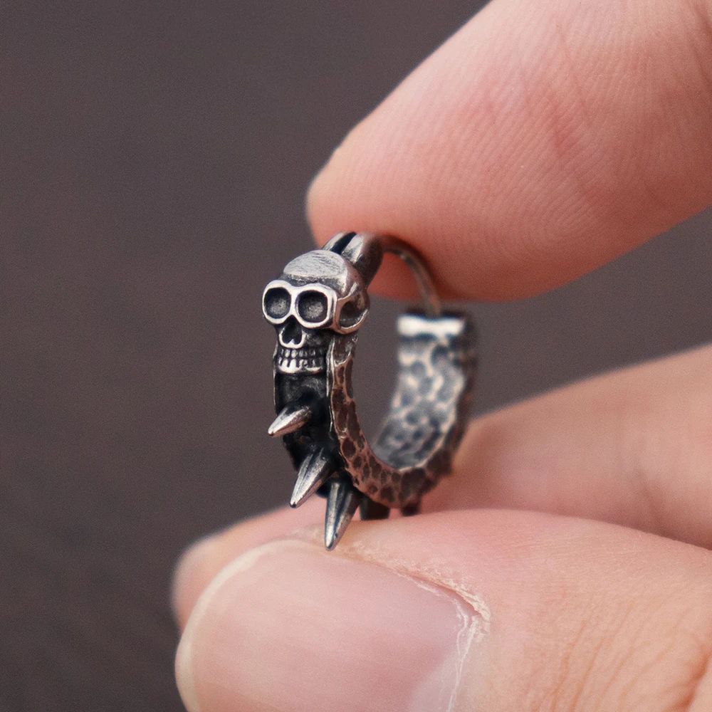 Серьги череп с шипами серьги-кольца с черепом 1шт