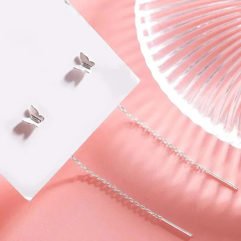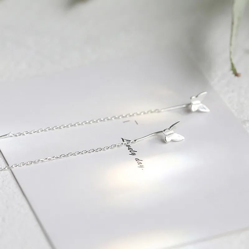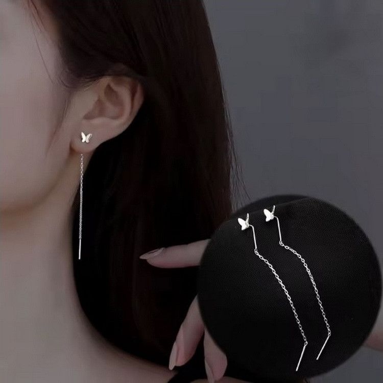 Серьги протяжки длинные с бабочкой вечерние кисти бабочки с цепочкой