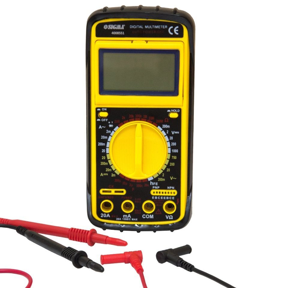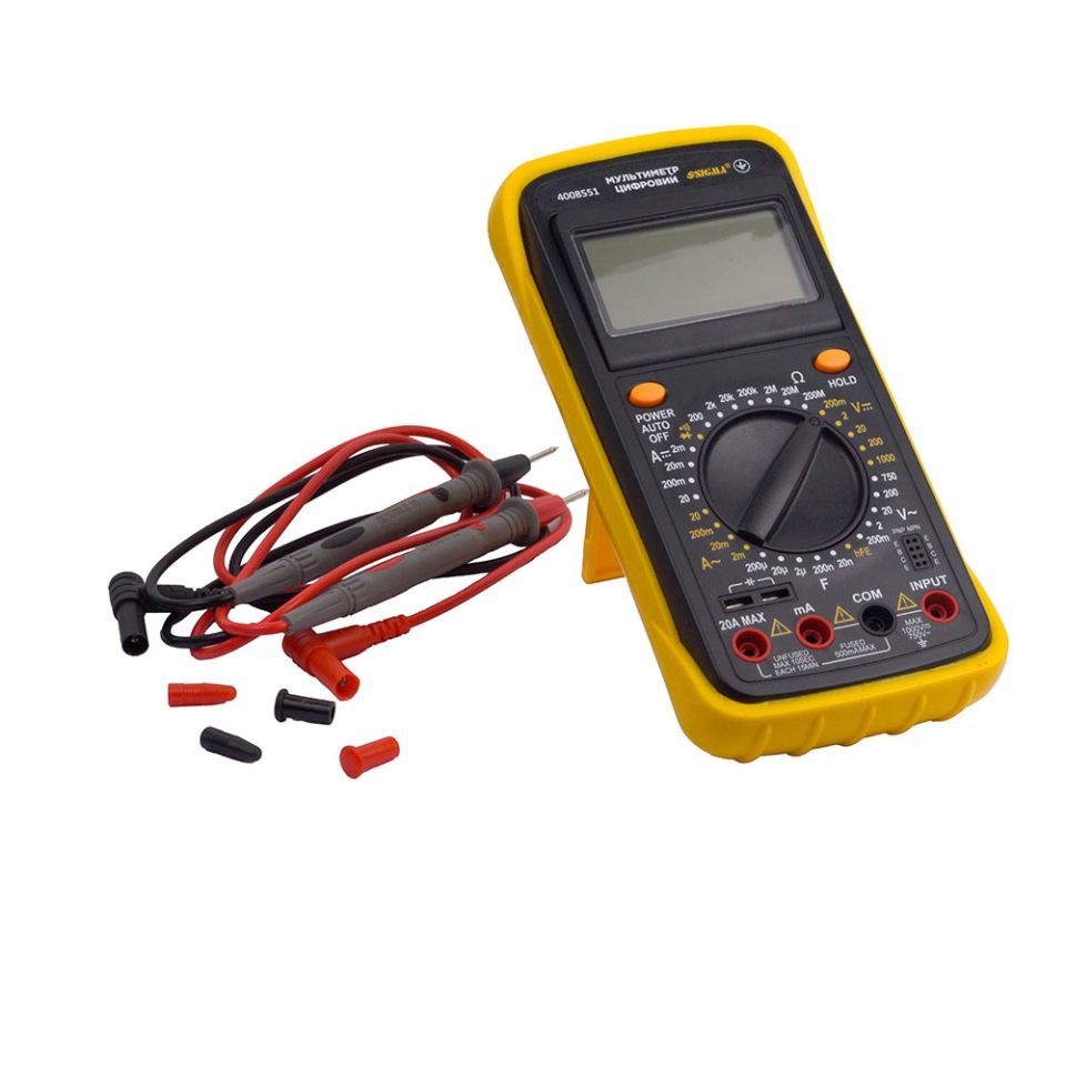 Мультиметр цифровой профи SIGMA (4008551) с ЖК дисплеем, имеющий разрешение 3 1/2" разряда, который предназначен для измерения постоянного и переменного напряжения, постоянного и переменного тока, сопротивления, тестирования транзисторов, а также прозвона цепи на обрыв.