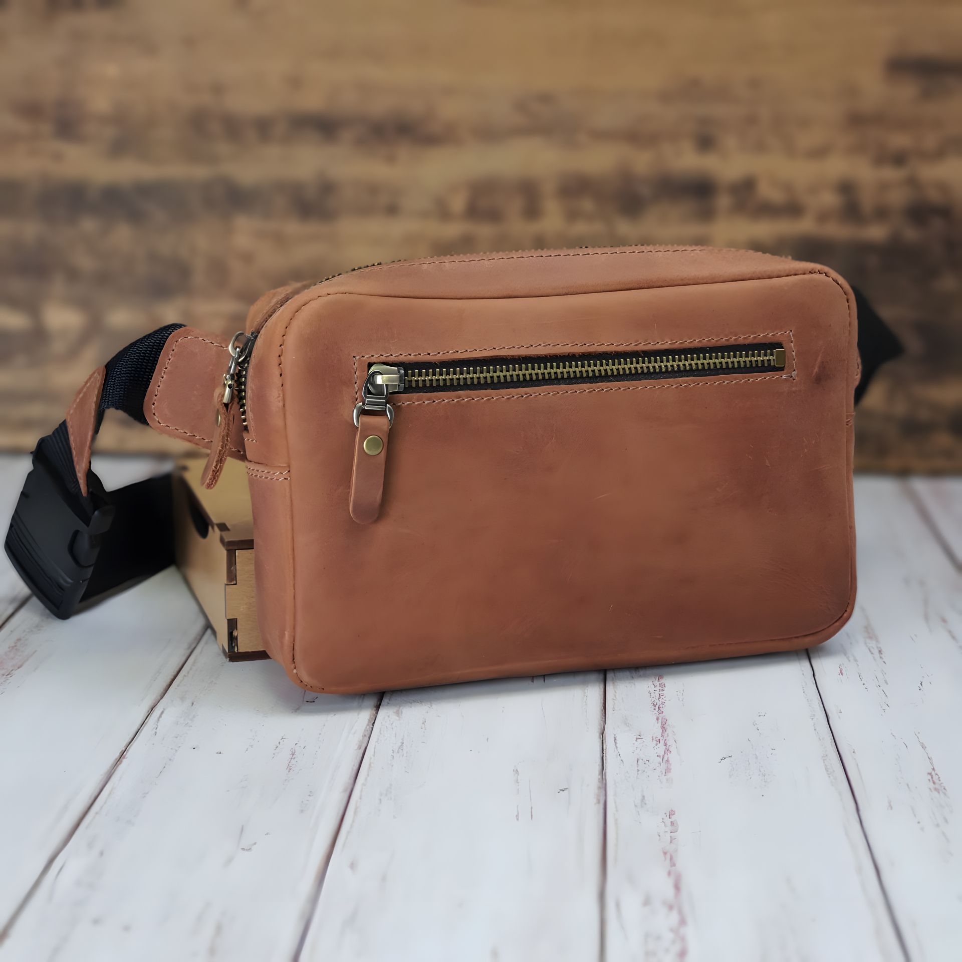 Мужская сумка-бананка из винтажной кожи Crazy Horse - идеальное решение для тех, кто ценит комфорт и стиль в повседневной жизни. Плотная и прочная кожа обеспечивает долговечность изделия, а ее коньячный оттенок придает сумке элегантный внешний вид.