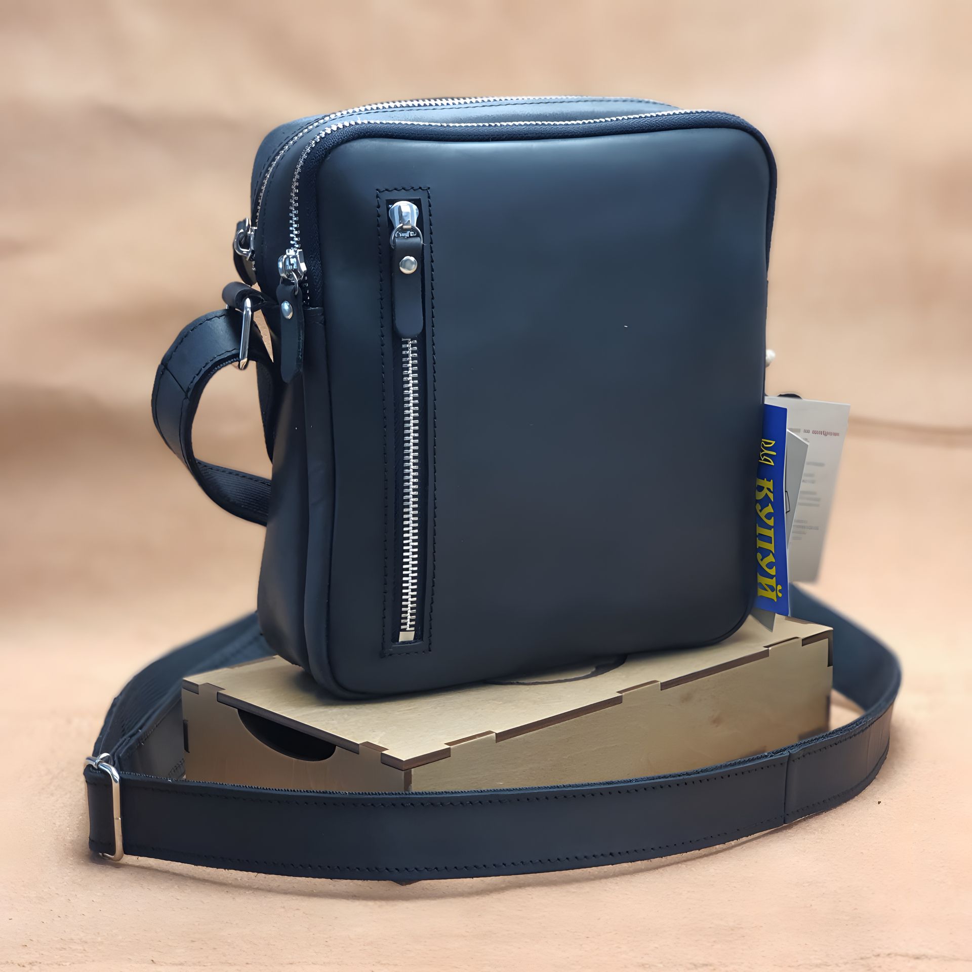 Мужская кожаная черная сумка через плечо - GS 22*20*7 см