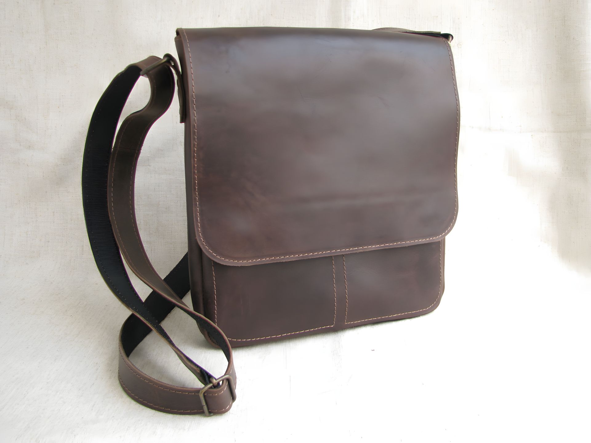 Мужская сумка - планшет. Пошита из натуральной телячьей кожи, обработанной воском, винтажной Crazy Horse. Кожа матовая, плотная, хорошо держит форму. В сумке одно большое отделение с карманом у задней стенки и карманом поменьше для документов, телефона или ключей. Сумка отлично подойдет для планшета до 10". Размер основного отдела 26*22*3 см. Спереди, под клапаном большой карман на молнии. Ремень через плечо ( 150 см) обшит кожей и регулируется по длине.