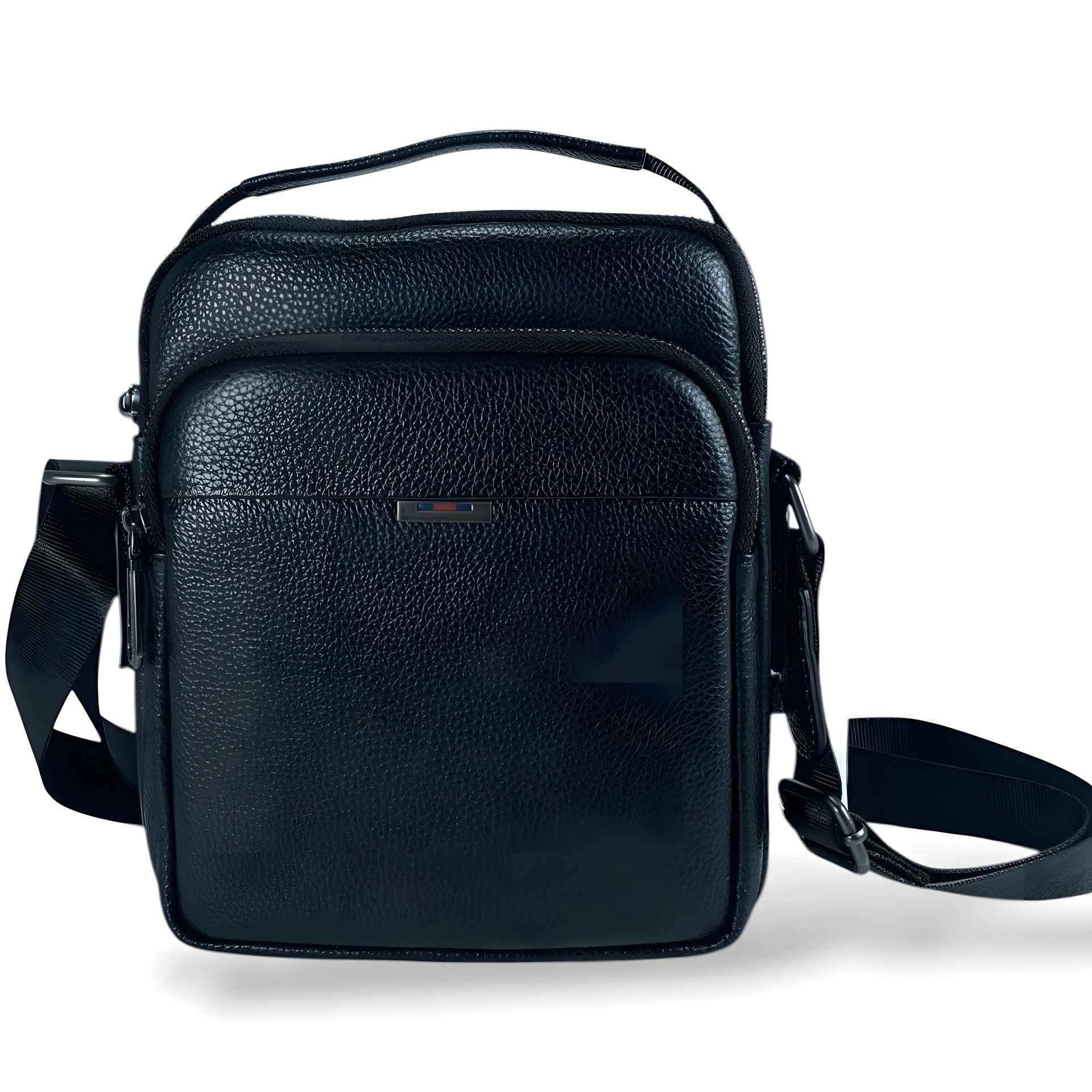 Кожаная сумка через плечо на четыре отделения, чёрная, 3 л, с ручками для переноса