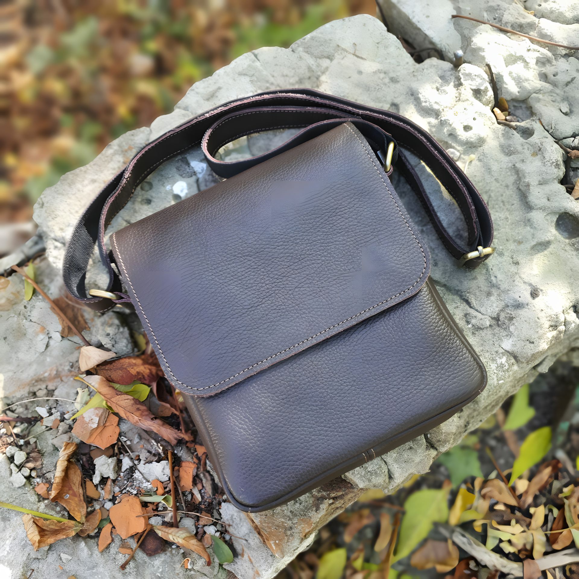 Наружные размеры сумки 23*20*5 см. Удобная и практичная повседневная модель , которая подойдет и к джинсам , и к деловому костюму. В сумке одно основное отделение , в котором есть потайной карман на молнии и небольшой карман для документов, телефона или ключей. Так же дополнительно нашиты карманы для ручек и визиток. Перегородки и карманы пошиты из натурального невощеного кожподклада. Спереди на фрональной стенке большой карман на молнии. Вся сумка закрывается клапаном на магнитных кнопках. Ремень через плечо ( 150 см ) обшит кожей и регулируется по длине .