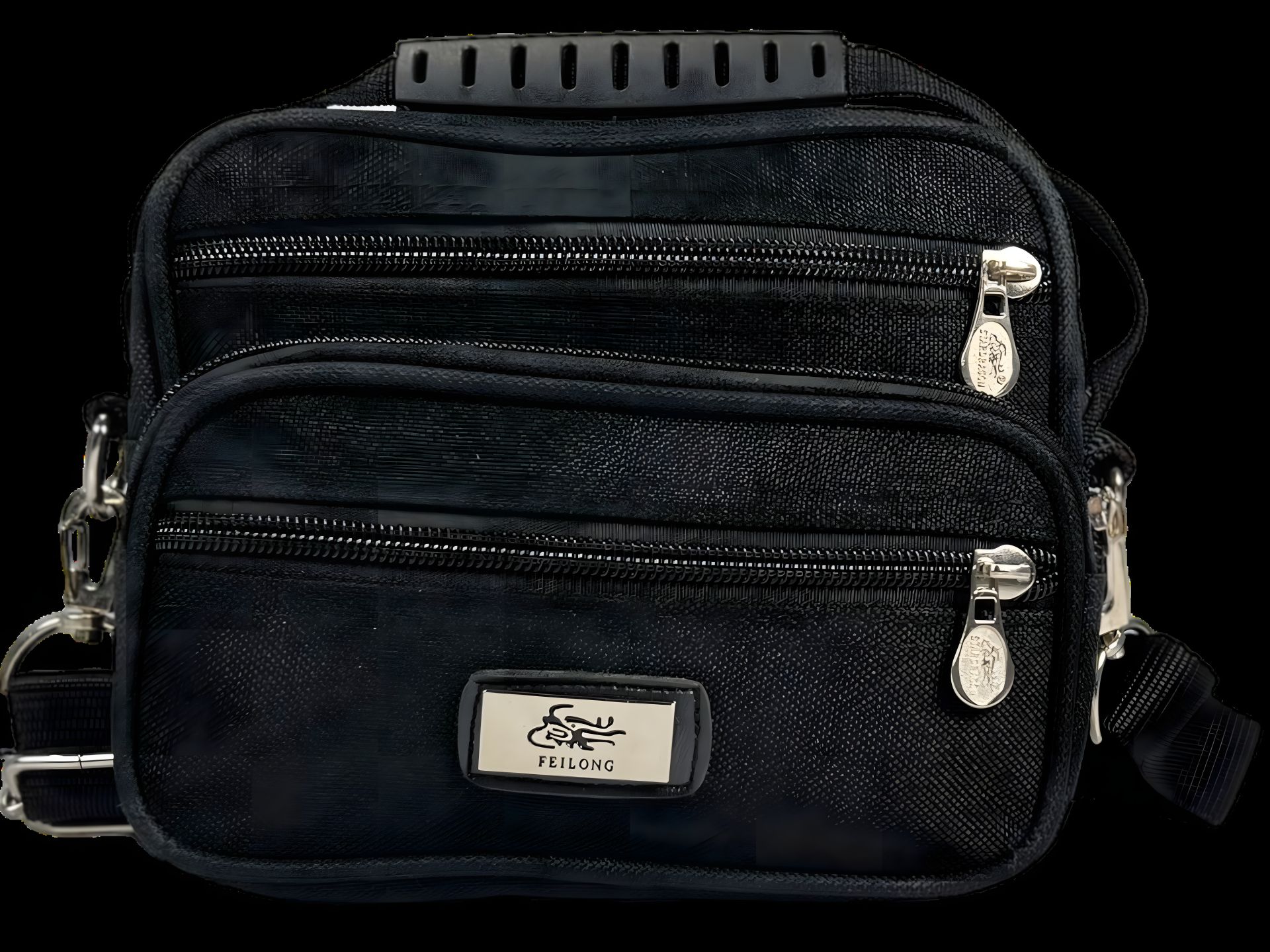 Черная комфортная сумка через плечо оптимального размера с шестью отделениями