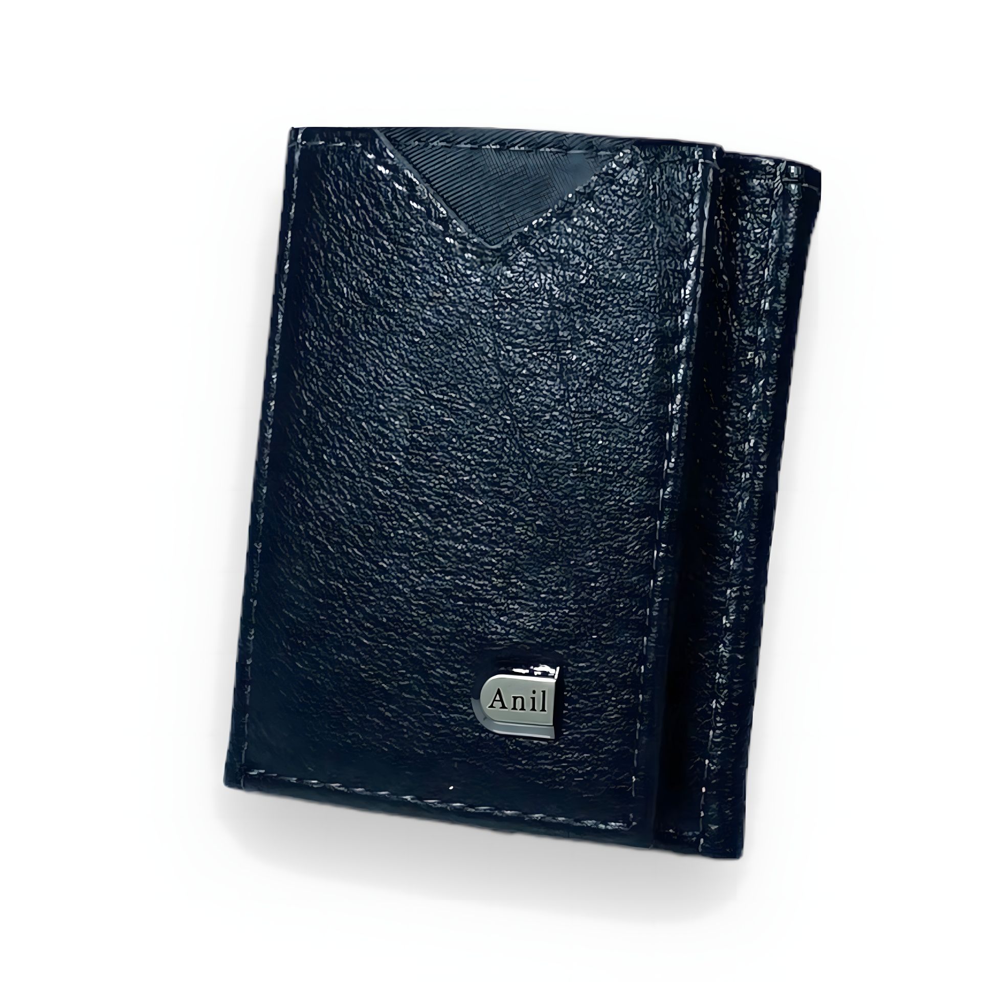 Мужской кожаный кошелек, черный, классический дизайн, 3 отделения для купюр