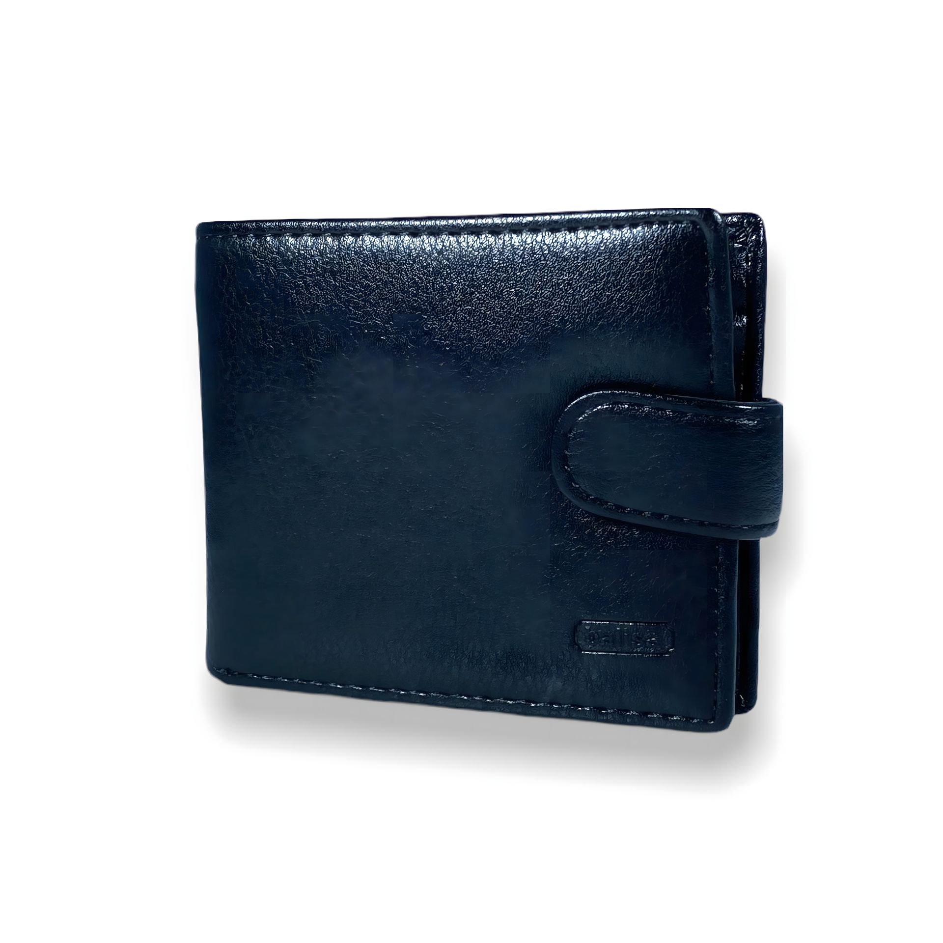 Мужской кошелек изготовлен из качественного кожзаменителя и имеет два отделения для бумажных денег равно на молнии. Есть одно прозрачное отделение. Предусмотрено шесть ячеек для пластиковых карточек. Внутреннее отделение монет на кнопке. Кошелек фиксируется кнпкой