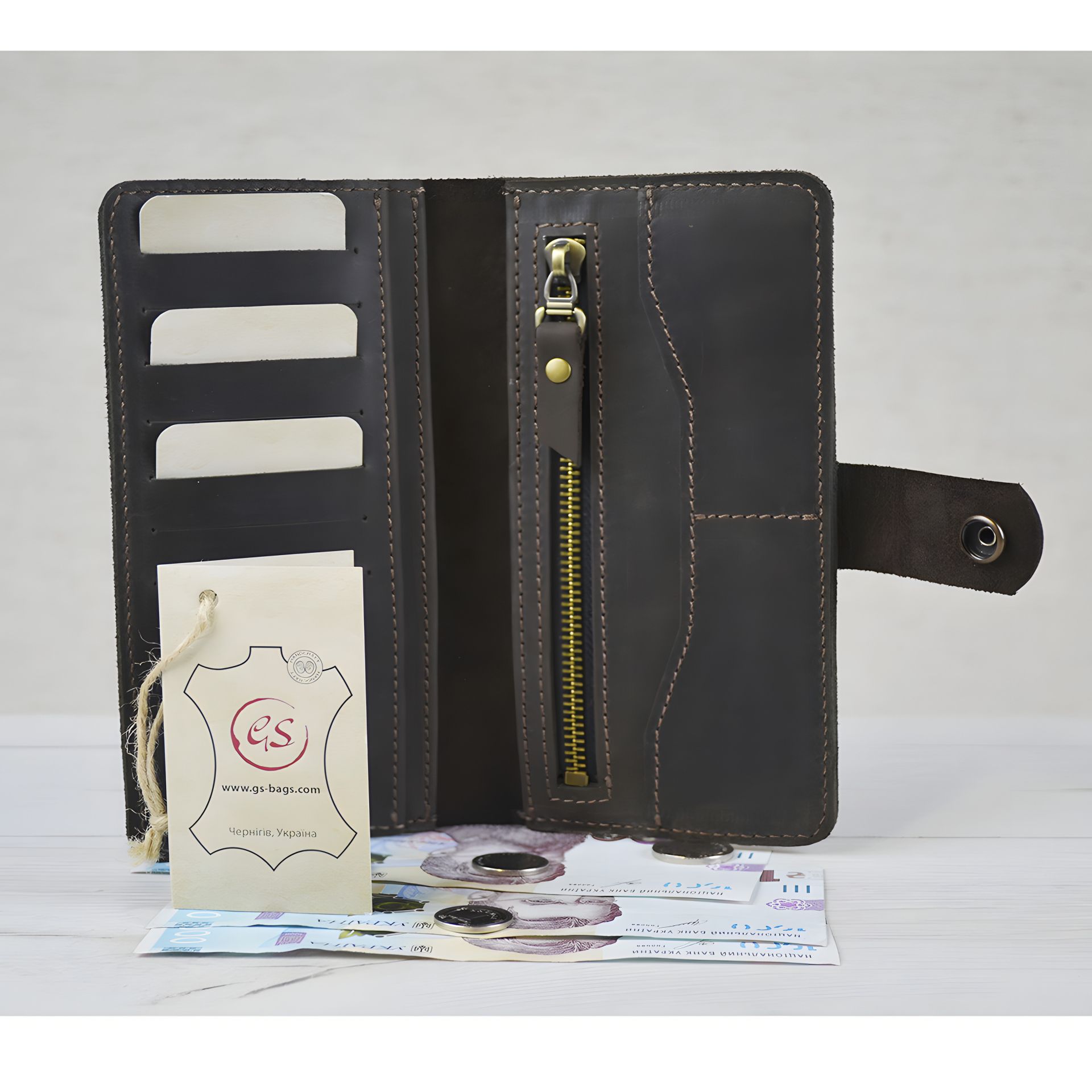 Кожаный мужской кошелек с монетницей на молнии GS, коричневый