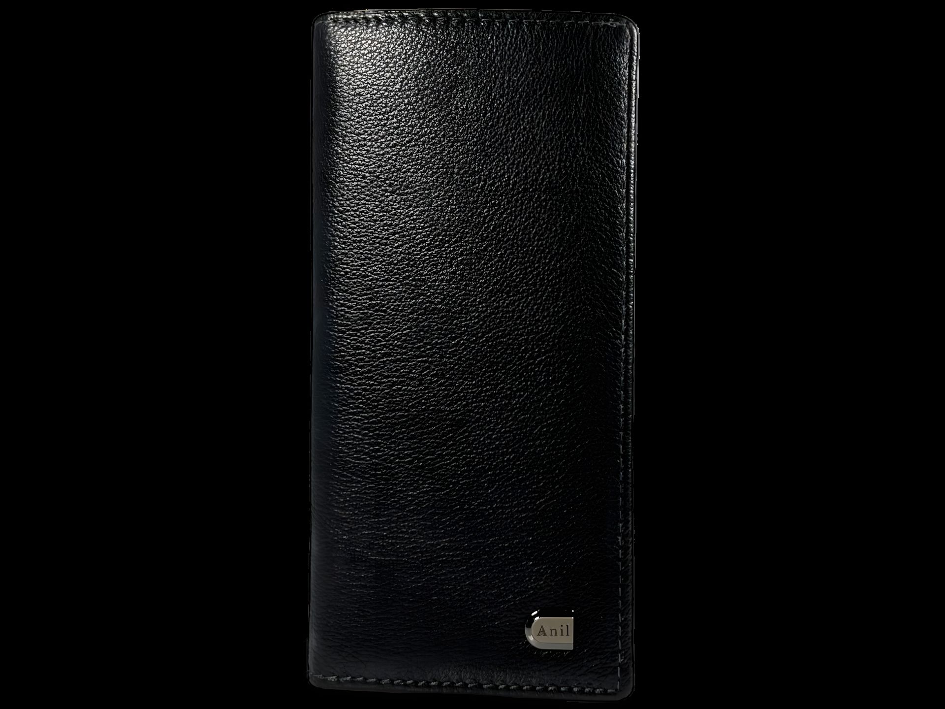 Мужской кожаный кошелек, черный, классический дизайн, 3 отделения для купюр