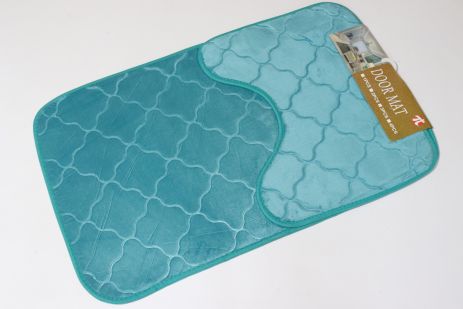 Набори килимків у ванну та туалет з мікрофібри. Цей матеріал поглинає багато води, легко переться й зносостійкий. З нижньої сторони нанесена гумова основа, яка виключає ковзання. У наборі два килимки, один прямокутний 50*80 см й другий 40*50 см з вирізом під унітаз. Краї оброблені кантом.
