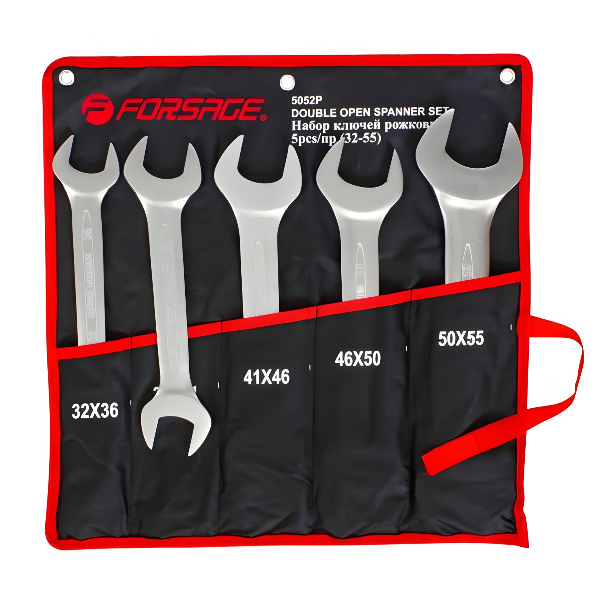 Набор ключей рожковых, 5пр. (32х36, 36х41, 41х46, 46х50, 50х55мм), на полотне FORSAGE F-5052P