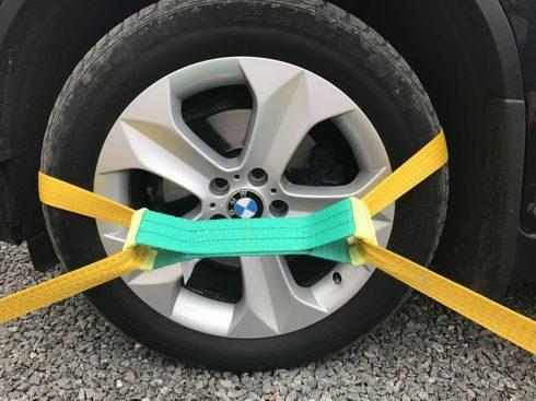 Во время транспортировки стропа не соприкасается с покрытием диска автомобиля, что обеспечивает его сохранность.