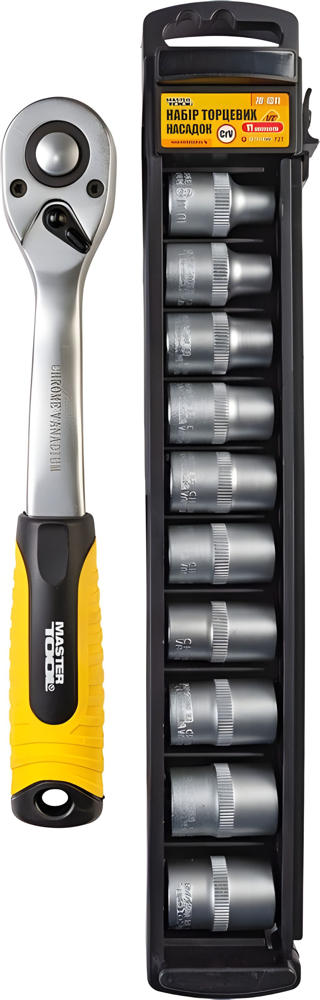 Набор торцевых головок 6-гранных ½" 8-19 мм, с трещоткой 72 зубца, CrV, 11 шт, MASTERTOOL 78-1311