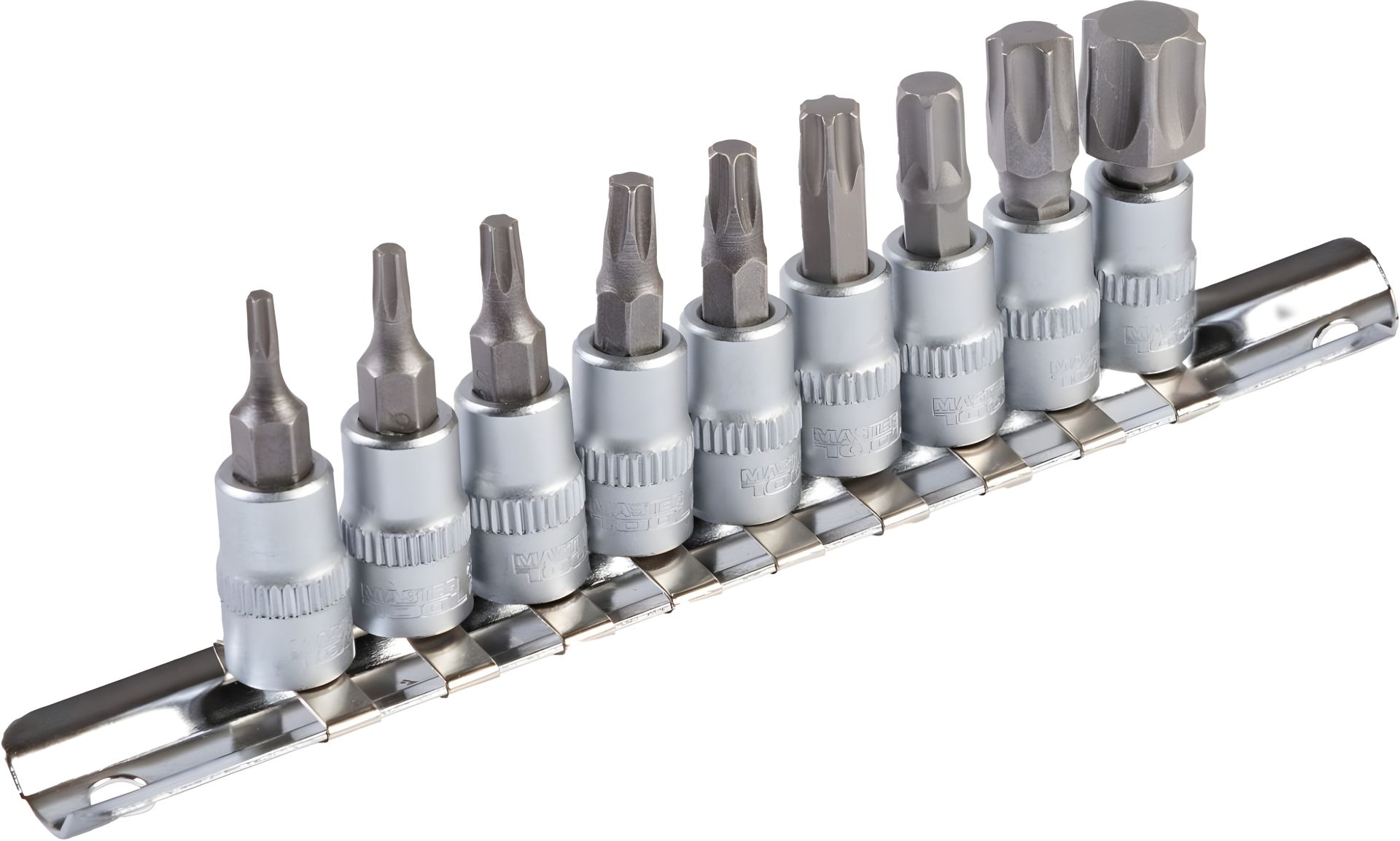 Набор торцевых головок с отверточными насадками TORX ¼" T10-T60 CrV 9 шт MASTERTOOL 78-1400