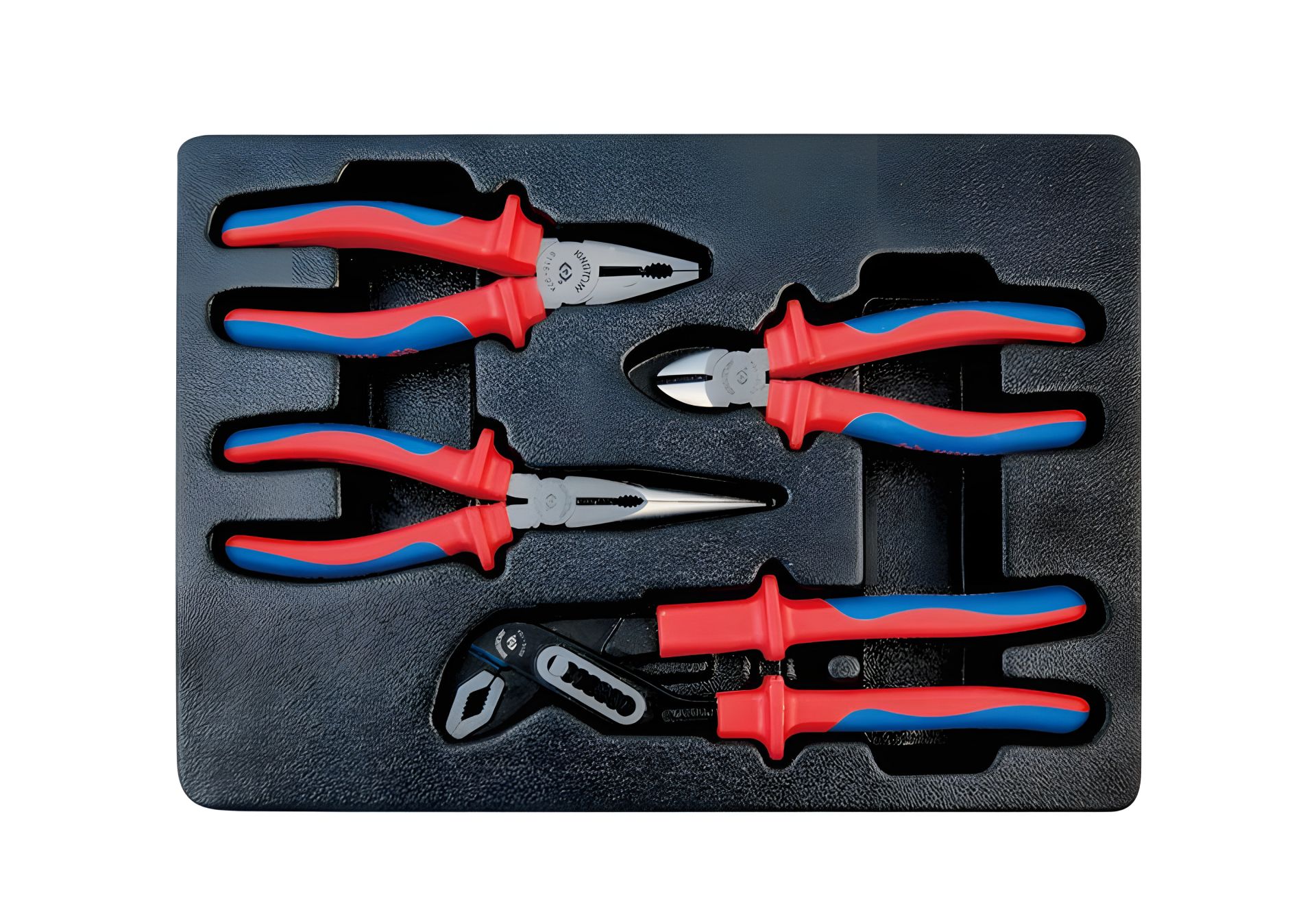 Инструментальный комплект 4 предмета в ложементе (кусачки, щипцы, пассатижи с изолированными рукоятками) KING TONY 9-40604GP