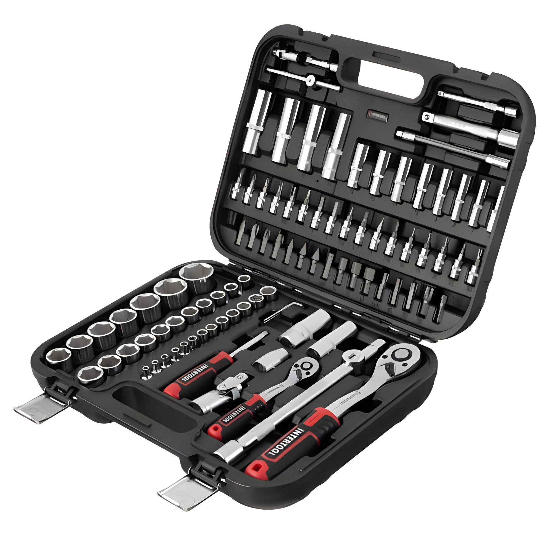 Набор инструментов STORM, 1/2 дюйма + 1/4 дюйма, Cr-V, 94 предмета, головки 4-32 мм, 32 биты, удлиненные головки 6-19 мм, кейс INTERTOOL ET-8094