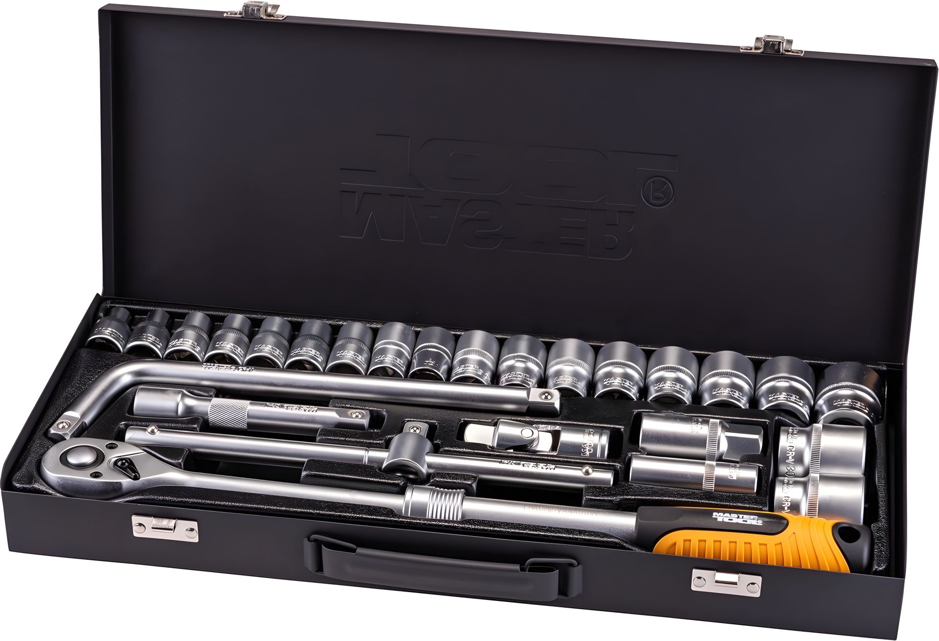 Набор инструментов PROFI ½" 26 шт 8-32 мм телескопическая трещотка CrV50BV30 металлический кейс - это профессиональный инструмент, который обеспечивает высокую эффективность и надежность выполнения самых сложных работ. Он станет незаменимым помощником для профессионалов, которые ценят свою работу и требуют от инструментов максимальной эффективности. • хром-ванадиевая сталь CrV50BV30