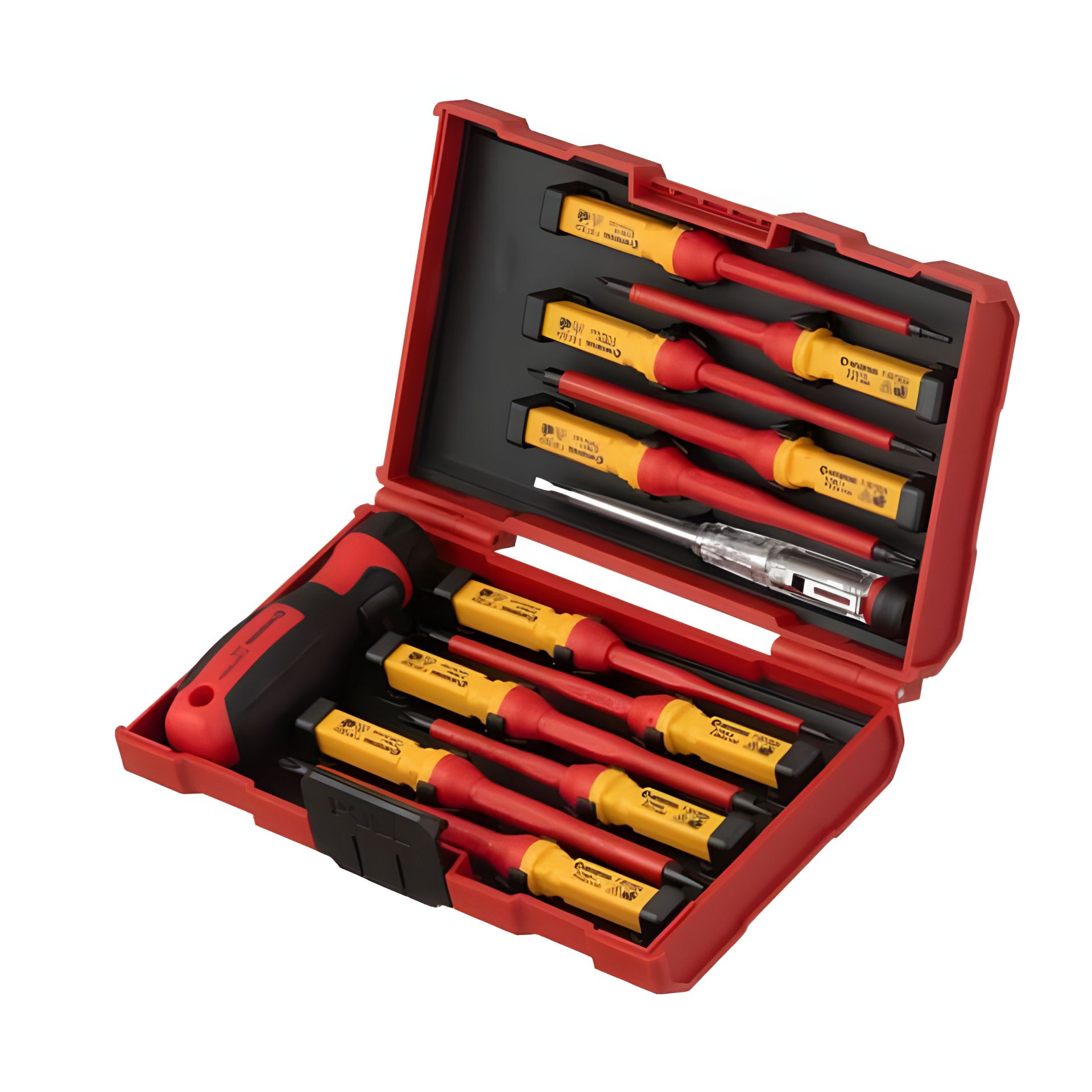 Набор изолированных отверток с индикатором напряжения, 14 ед, VDE, Cr-V, 80-100 мм (SL0,5, SL0,8, SL1, SL1,2, PH1, PH2, PZ1, PZ2, T10, T15, T20) STORM INTERTOOL VT-3614