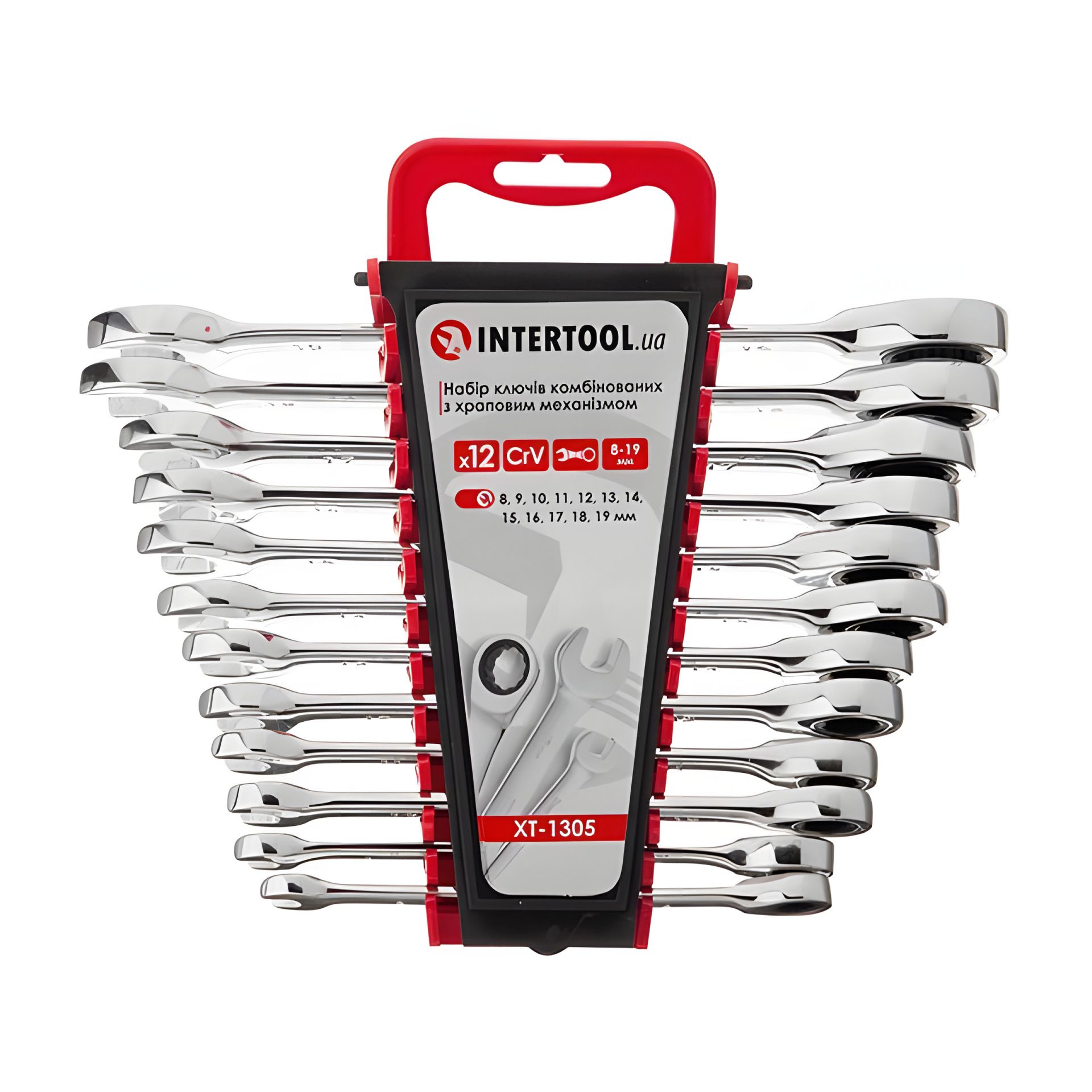 Профессиональный набор комбинированных ключей с трещоткой, 12 шт., 8-19 мм, Cr-V, DIN3113 INTERTOOL XT-1305
