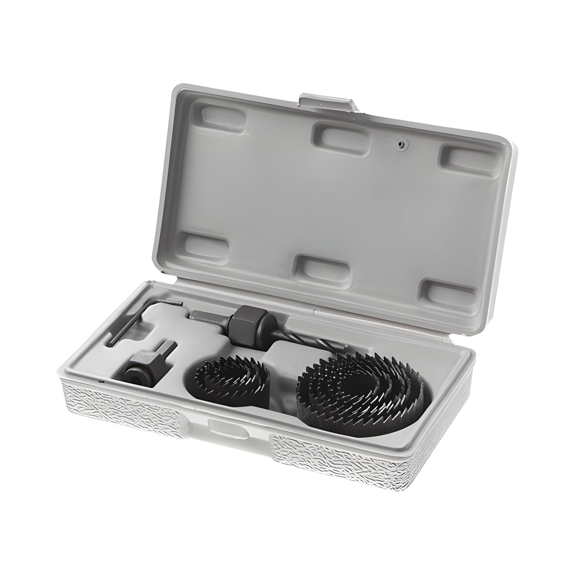 Этот комплект корончатых сверл предназначен для эффективного и точного сверления в мягких породах дерева, гипсокартоне, пластике, древесно-стружечных плитах и других подобных материалах. Восемь коронок диаметром 19, 22, 29, 32, 38, 44, 51, 64 мм обеспечивают разнообразие в выборе нужного размера отверстия для различных задач.