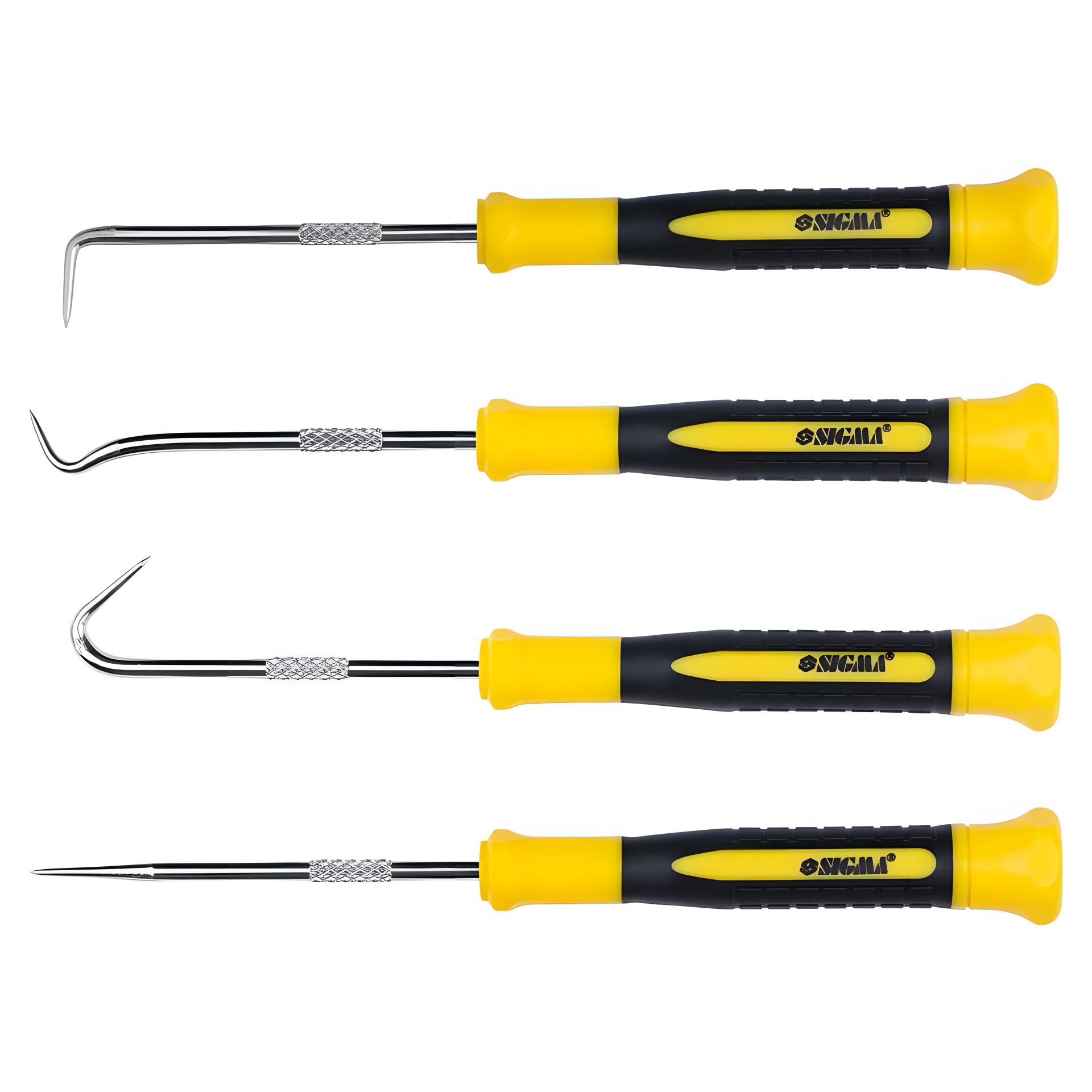 Набор крючков для слесарных работ 4шт SIGMA (4003411) - для демонтажа манжет, сальников и уплотнительных колец малых размеров узлов и агрегатов автомобильной техники, расположенных в труднодоступных местах.