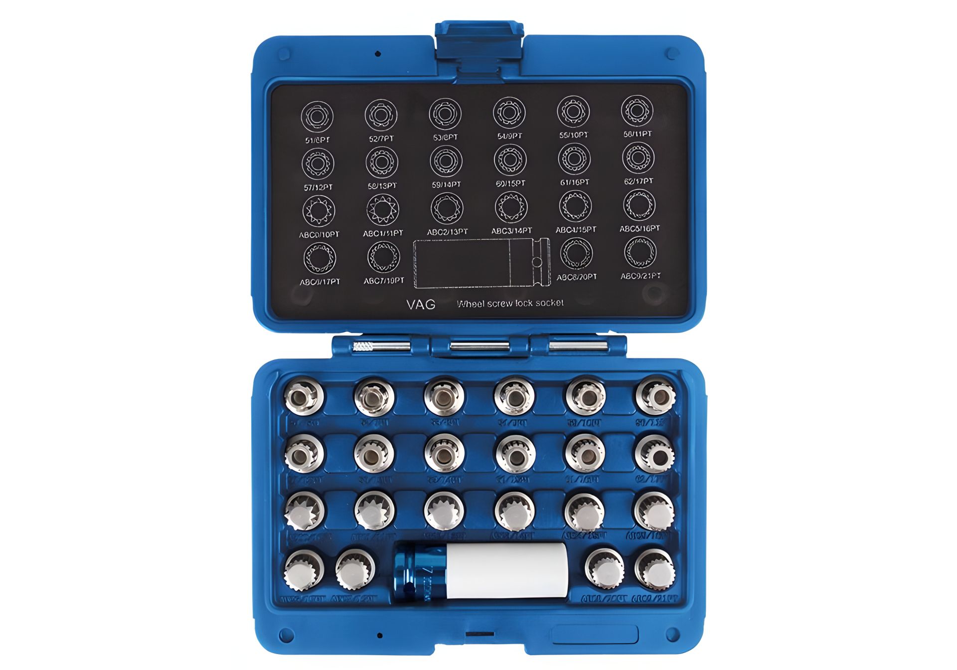 Набор насадок для установки/снятия секреток колес VW, 23 предмета KING TONY 9BW0123