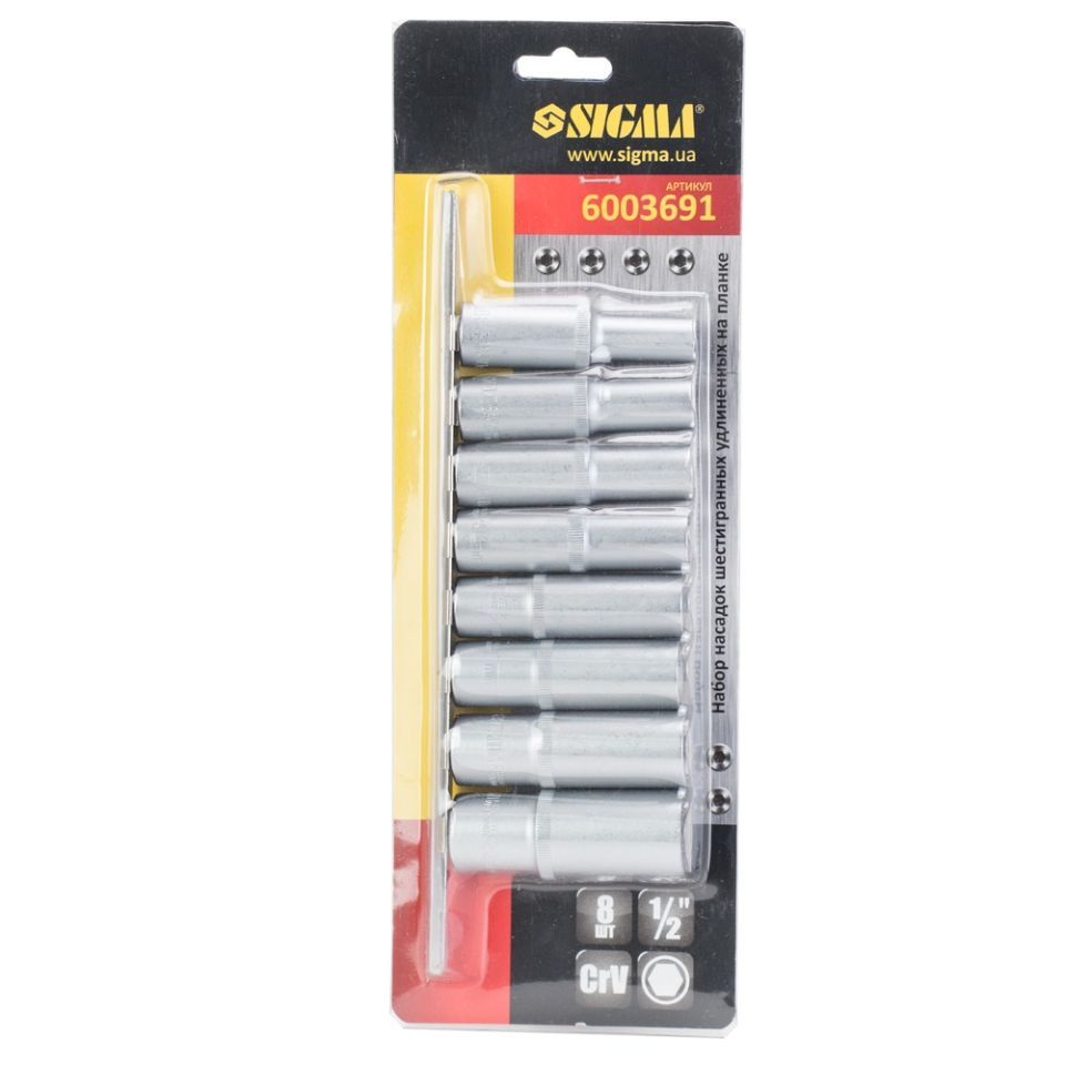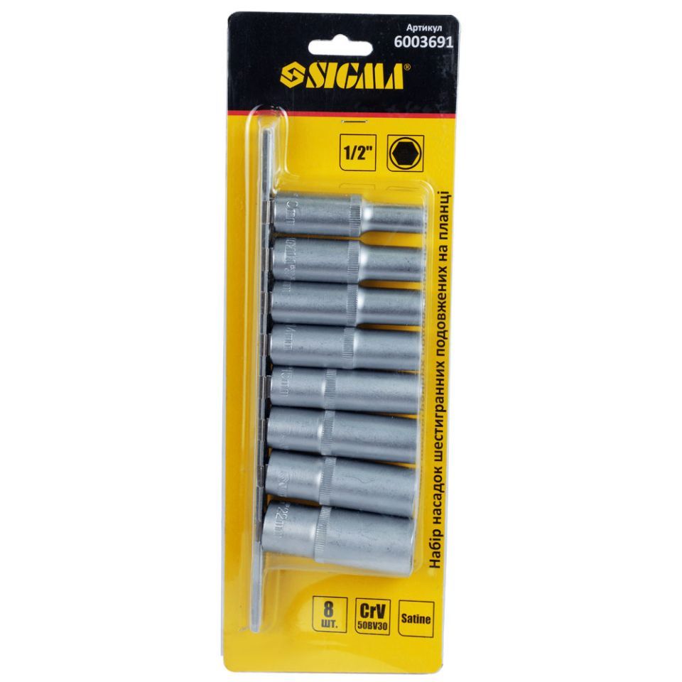 Набор насадок шестигранных удлиненных 1/2" на планке 8шт CrV SIGMA (6003691)