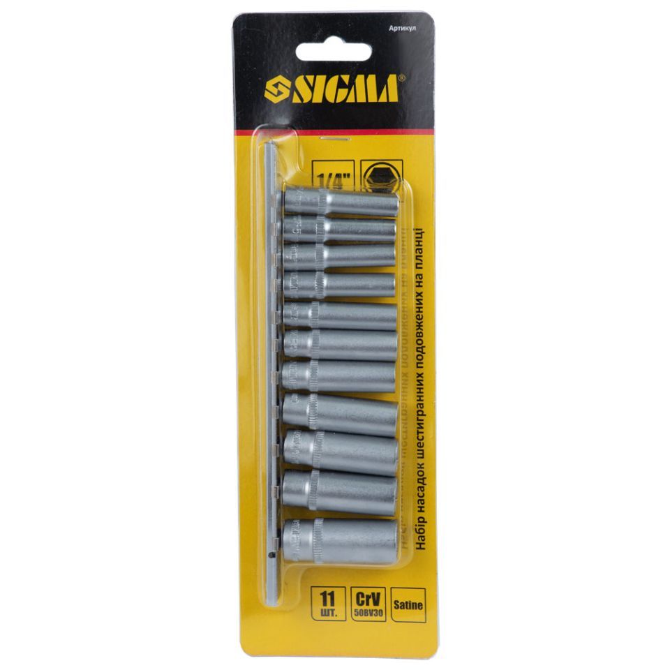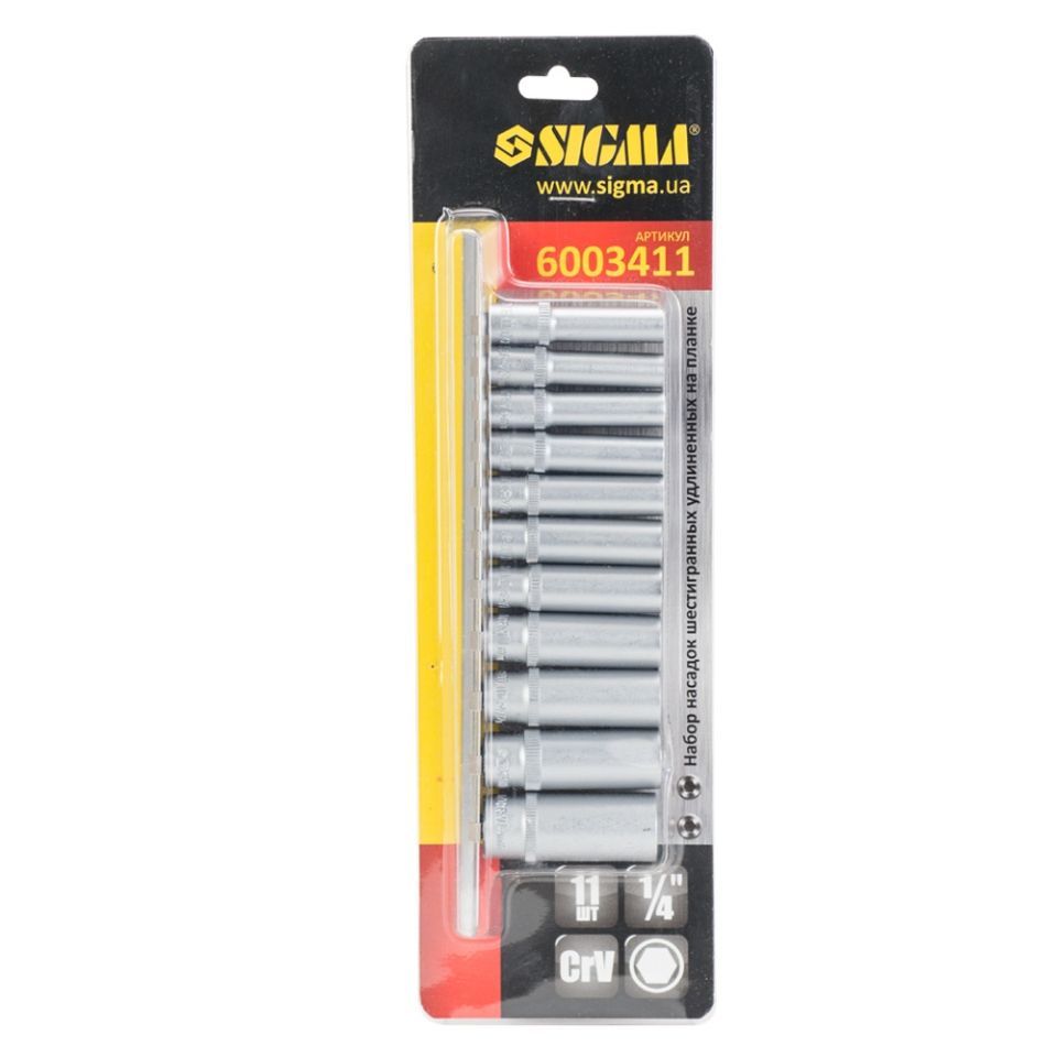Набор насадок шестигранных удлиненных 1/4" на планке 11шт CrV SIGMA 6003411