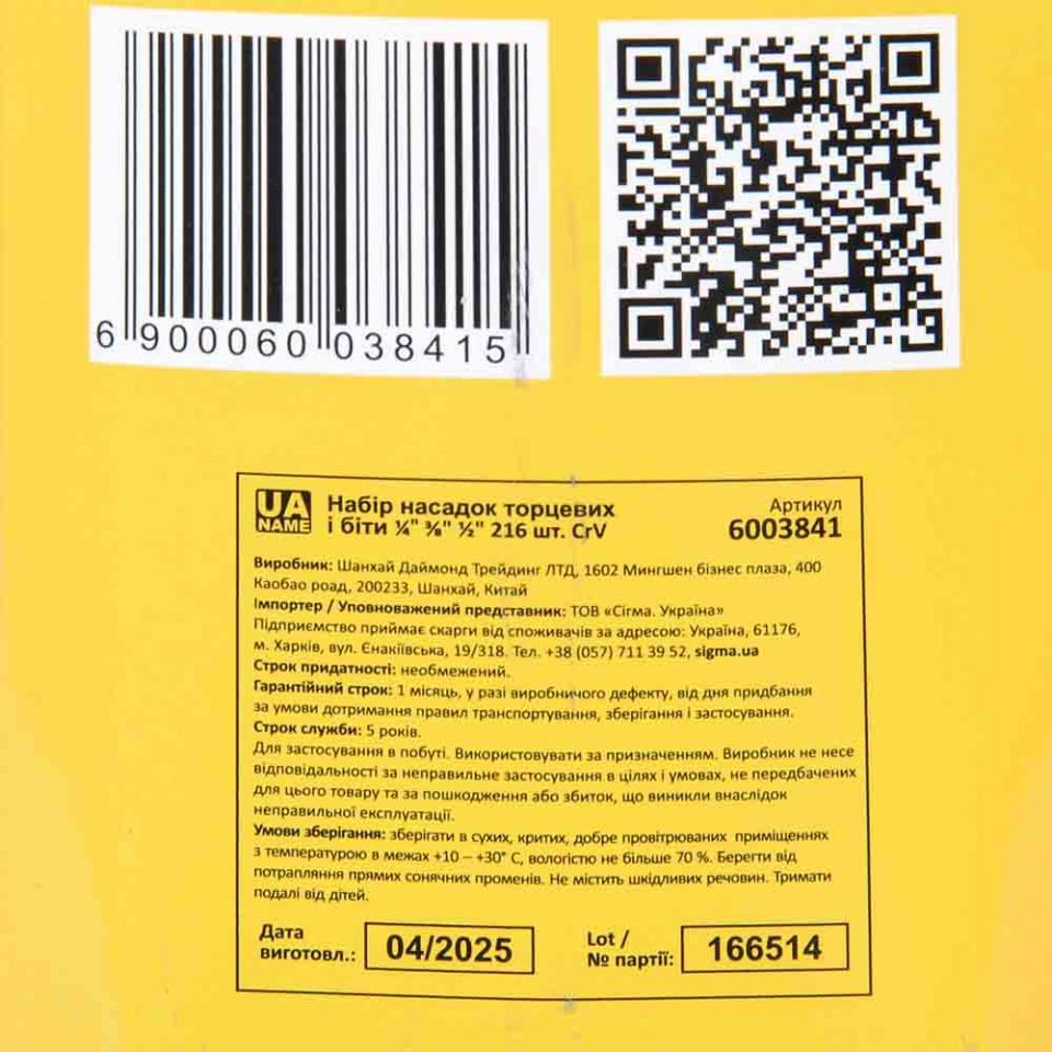 Комплект торцевых насадок и бит 1/4", 3/8", 1/2" 216шт CrV SIGMA 6003841