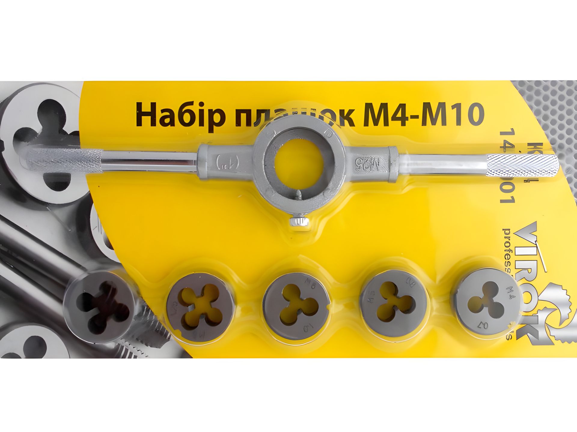 Набор плашек стальных М4 - М10, 6 шт., сталь 9ХС Virok 14V001