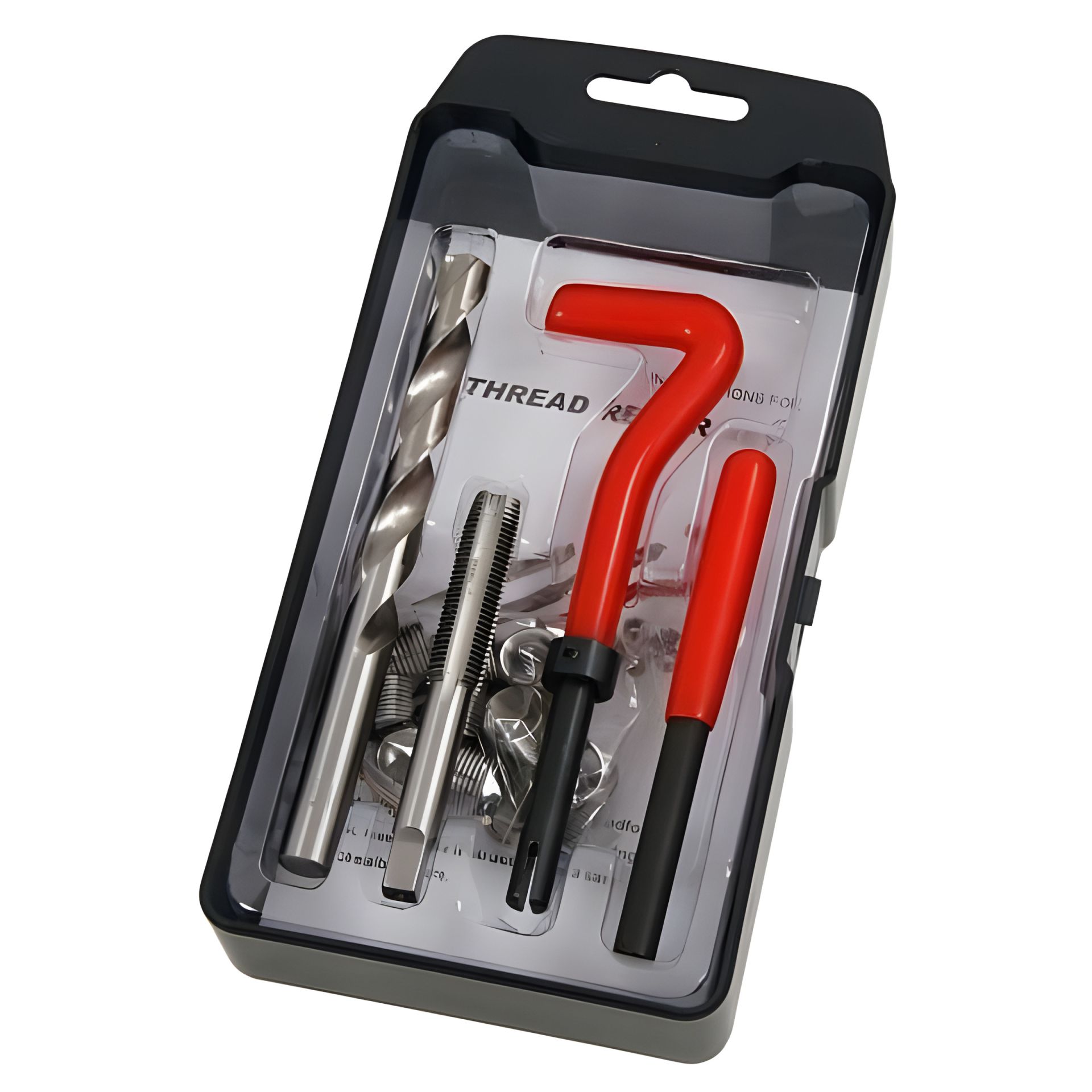 - В комплект входят: инструмент для установки, сверло из быстрорежущей стали, метчик из быстрорежущей стали и 10 резьбовых вставок.