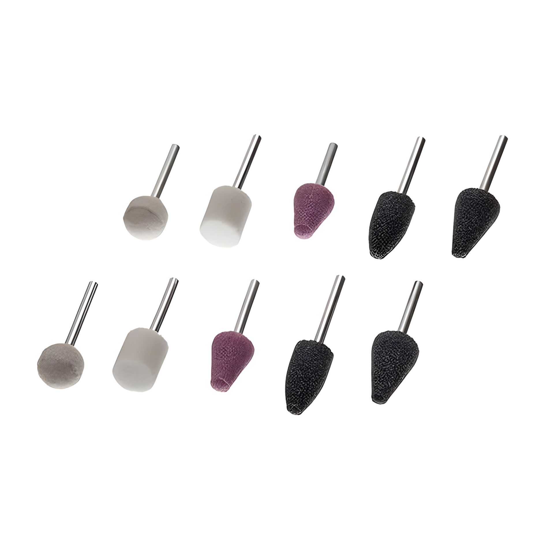 Набор включает в себя десять разнообразных насадок, предназначенных для эффективной обработки поверхностей из металла, камня, пластика, дерева. Используются для шлифования, полировки, зачистки деталей и заготовок различных форм в паре с дрелью, шуруповертом или гравером (прямой шлифмашиной).
