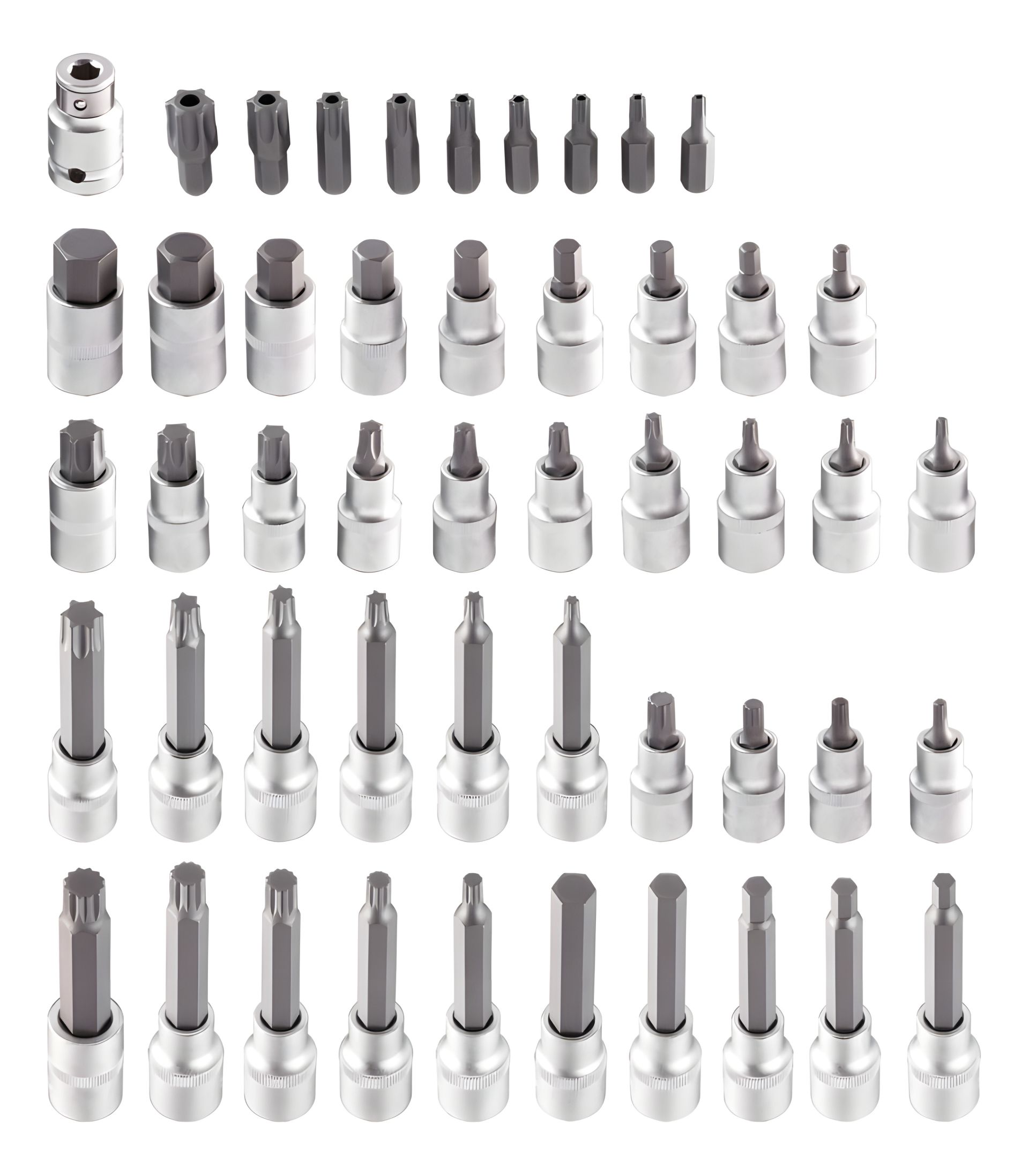 Набор сменных насадок Torx NEO, из 49 предметов, в наборе широкий выбор сменных наконечников и головок, в том числе головки с длинными наконечниками, размеры от H6 до H12, а также от T25 до T60, головки с короткими наконечниками, размеры от H5 до H19, а также наконечники Torx с отверстием 1/4" размеры от T20 до T60. Все инструменты в наборе изготовлены из высокосортной стали, головки из хромованадиевой стали, а наконечники из стали S2. Отличаются длительным сроком службы. Набор упакован в удобный коробочку. Бренд NEO оправдывает ожидания профессионалов.
