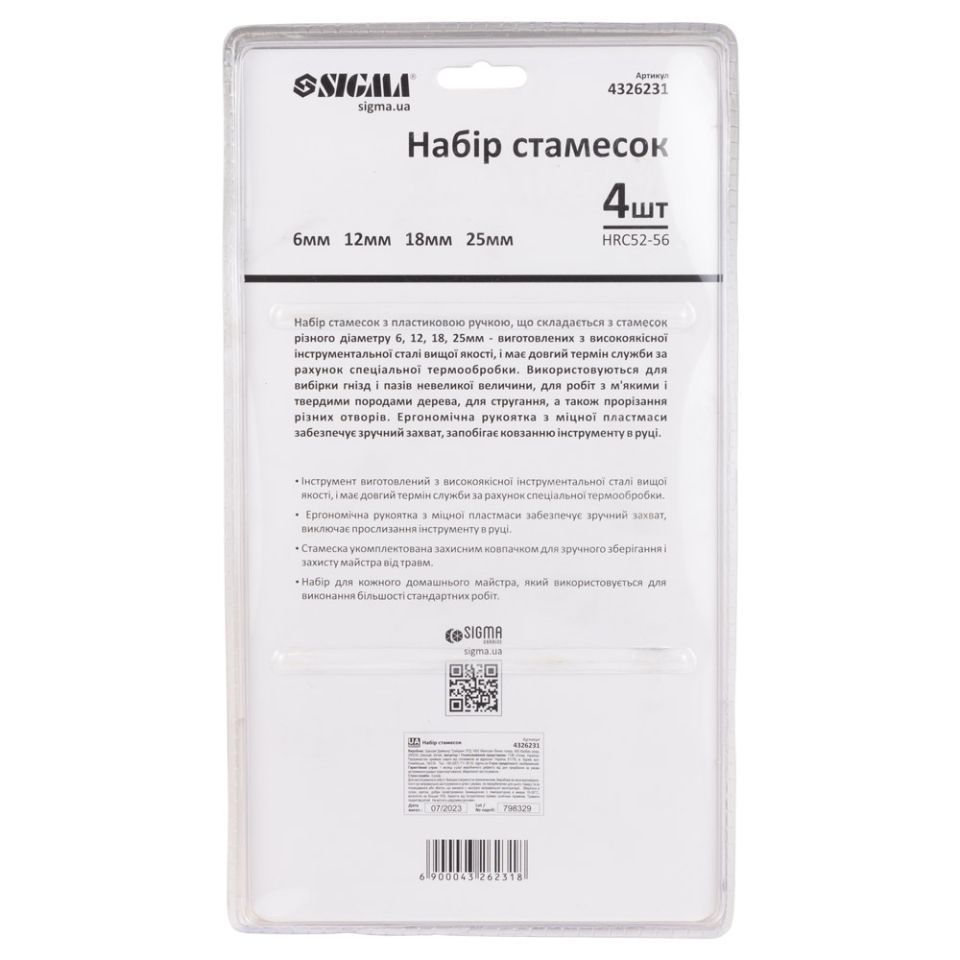 Набор стамесок 4шт (6, 12, 18, 25мм) пластиковая ручка SIGMA 4326231