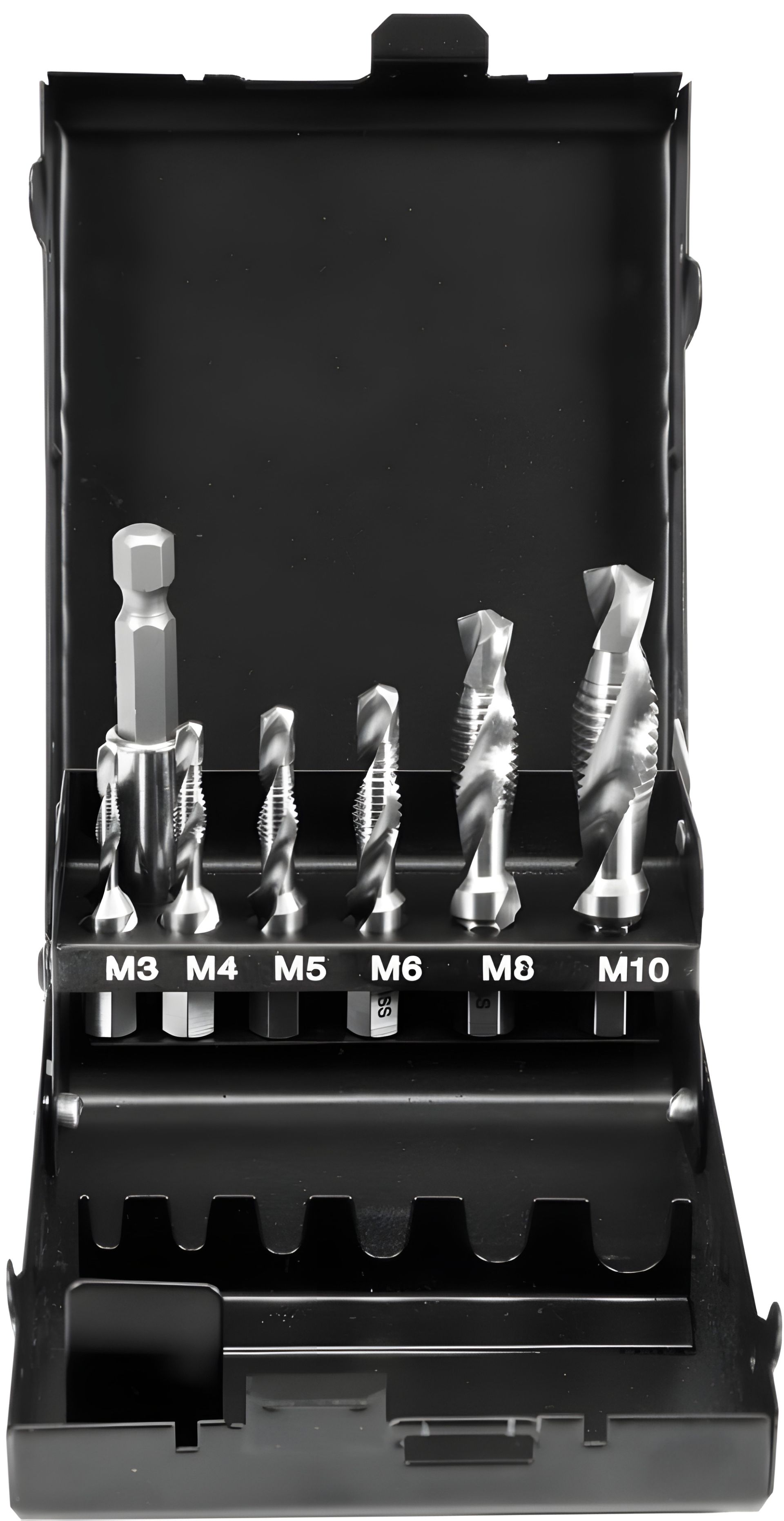 - Набор содержит 6 сверл M3-M10 и удлинитель 60 мм
