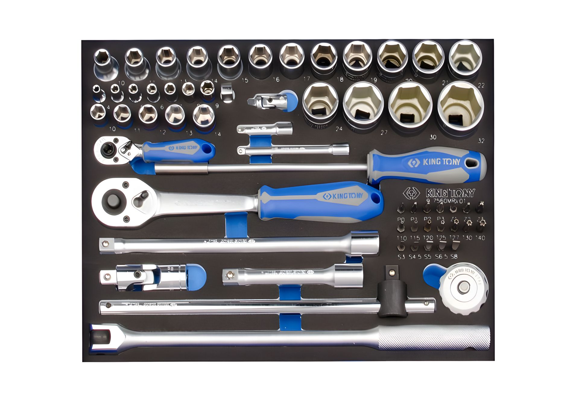 Набор торцевых головок 1/2" и 1/4" головки, трещетка, 60 предметов (EVA ложемент) KING TONY 9-7560MRV01