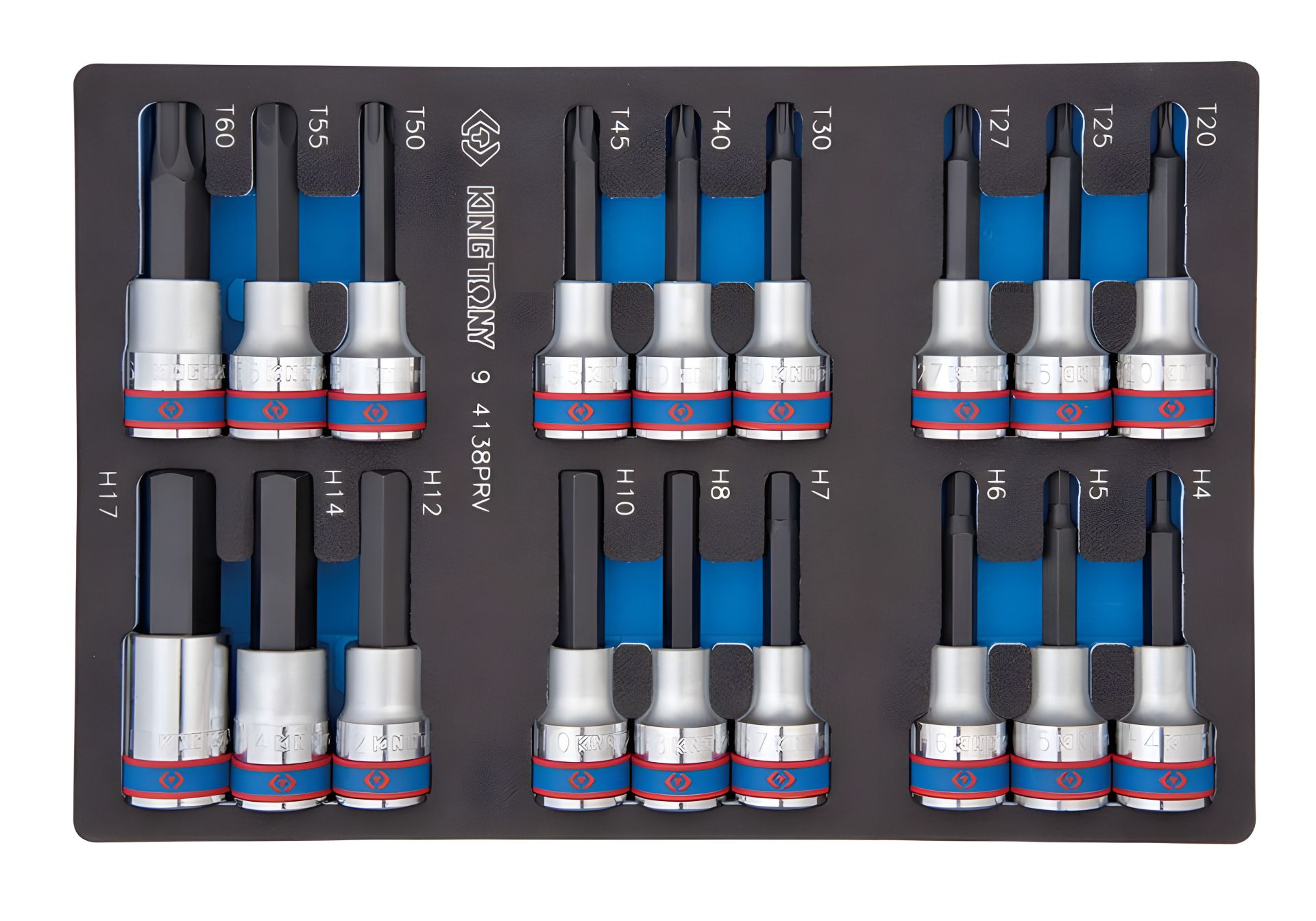 Набор торцевых головок 1/2", TORX, HEX, длина 80 мм, ложемент, 18 предметов KING TONY 9-4138PRV