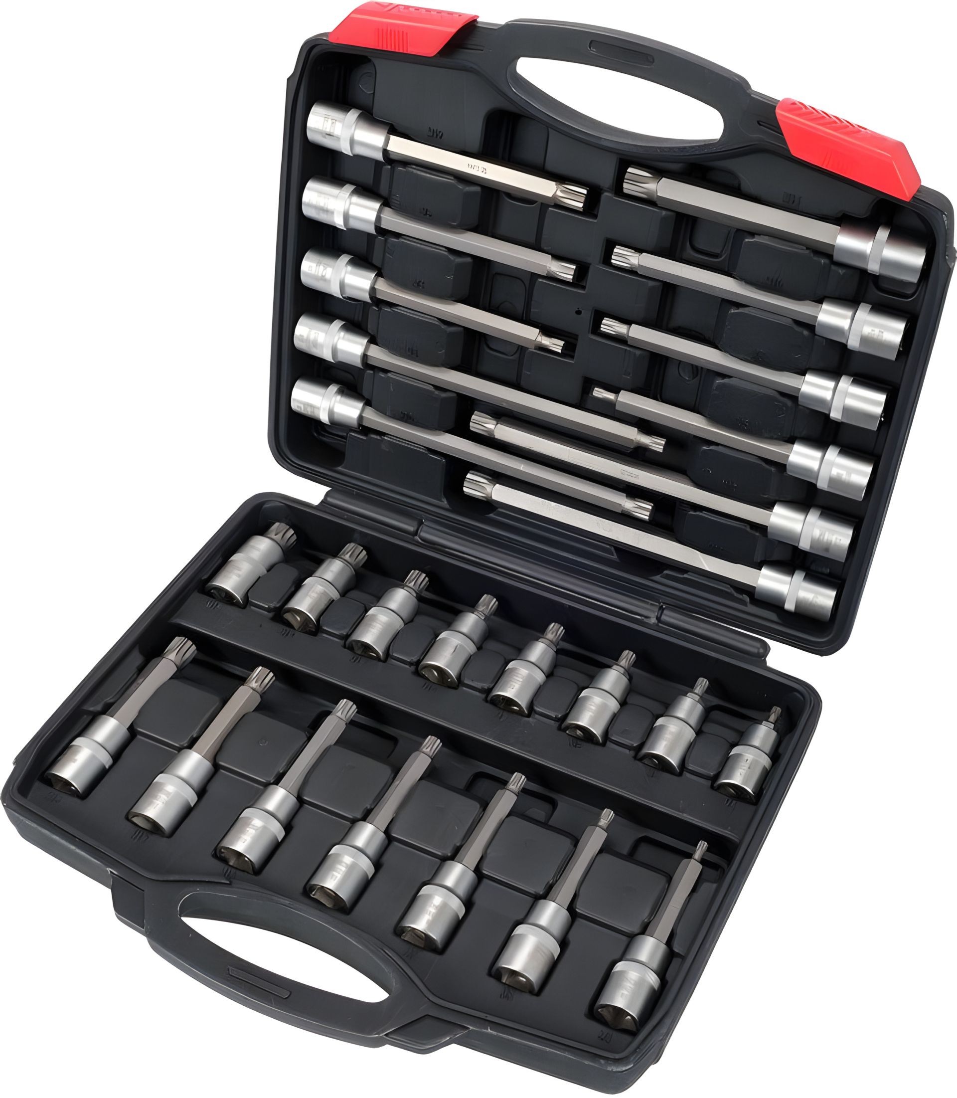 Набор торцевых головок SPLINE до квадрата 1/2", M5-М16, l= 55-200 мм, 26 эле. Yato YT-77542