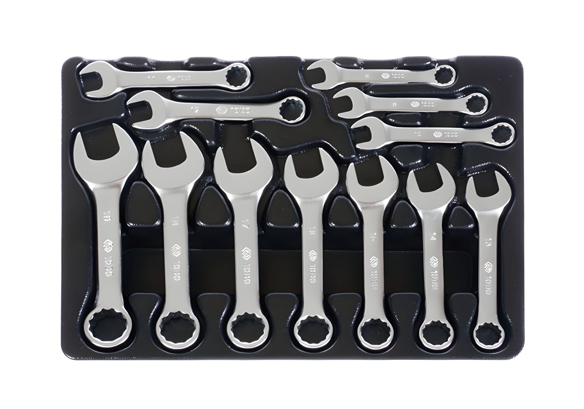 Комплект укороченных комбинированных ключей в ложементе, 12 предметов. KING TONY 9-1282MR